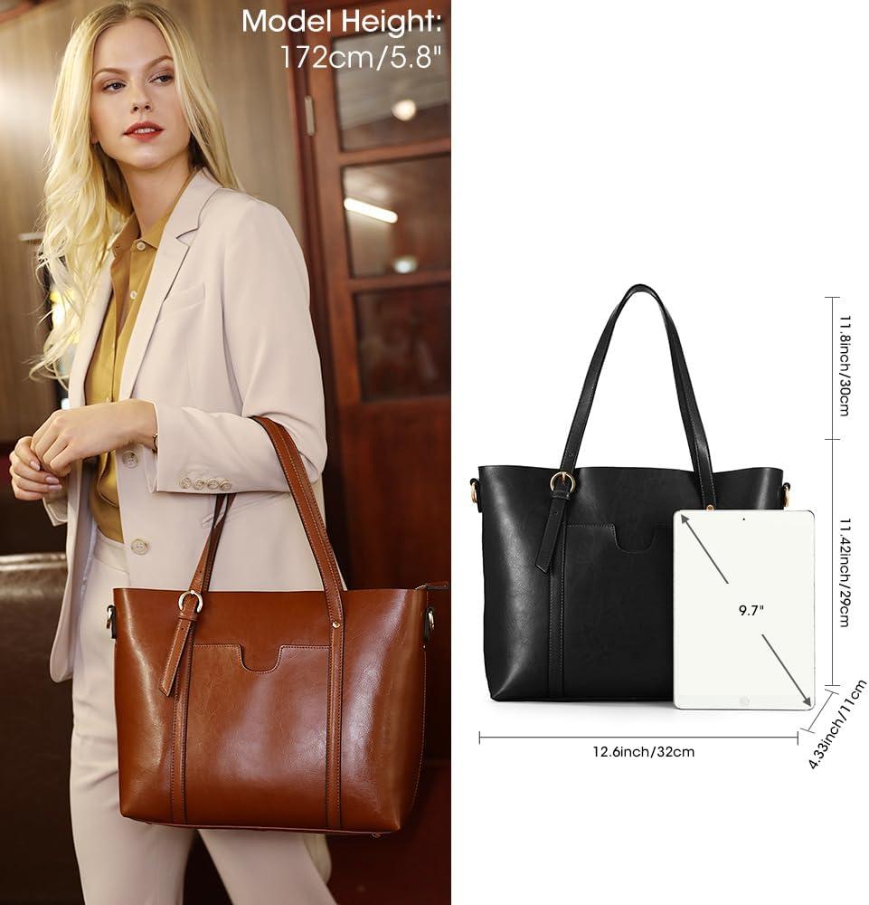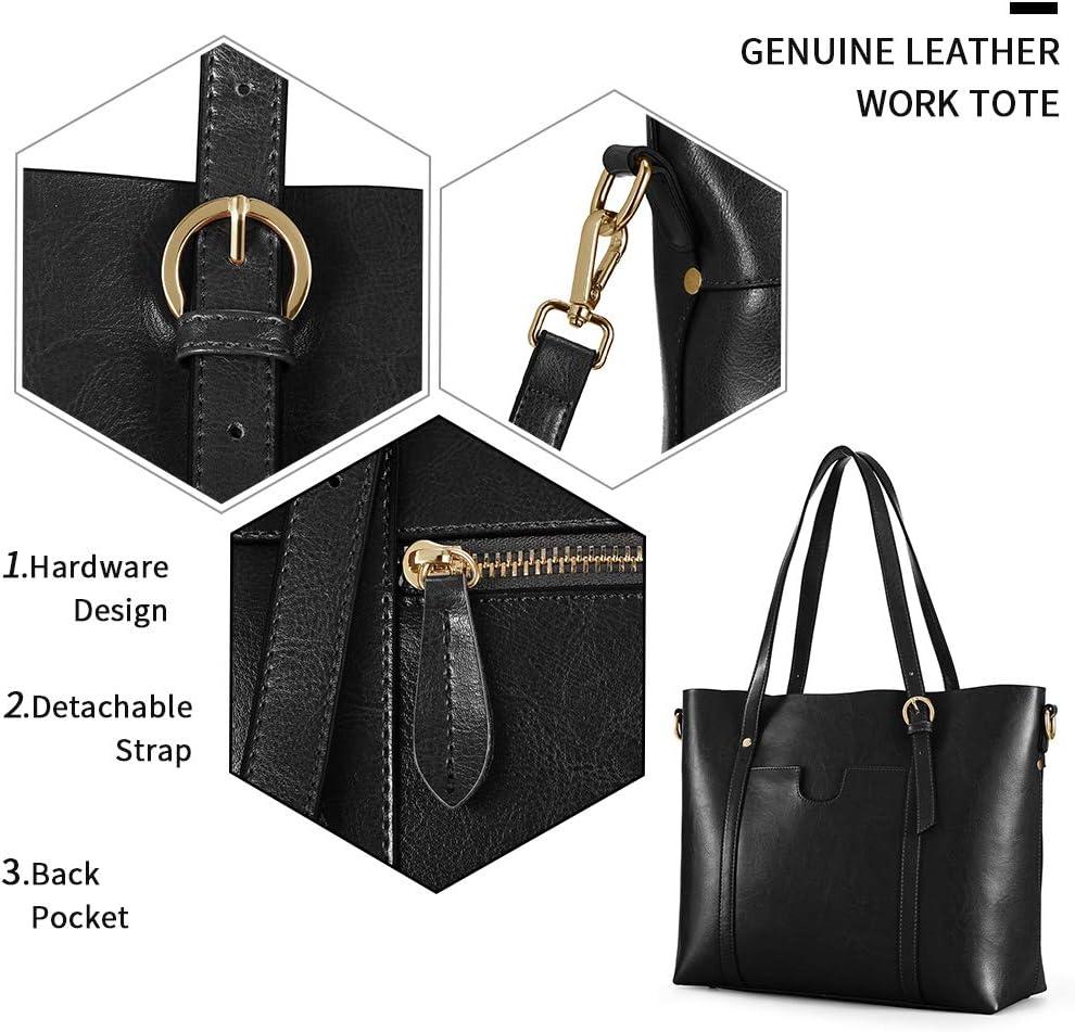 Kattee Genuine Leather Women Tote Bag Soft Handbags Vintage Shoulder Purses Fashion Top Handle Bag Large Capacity(Black)