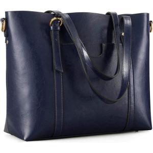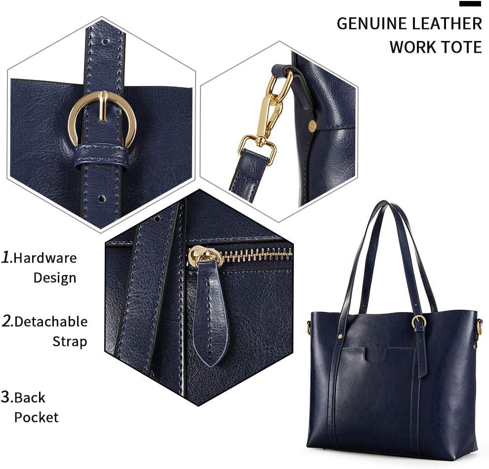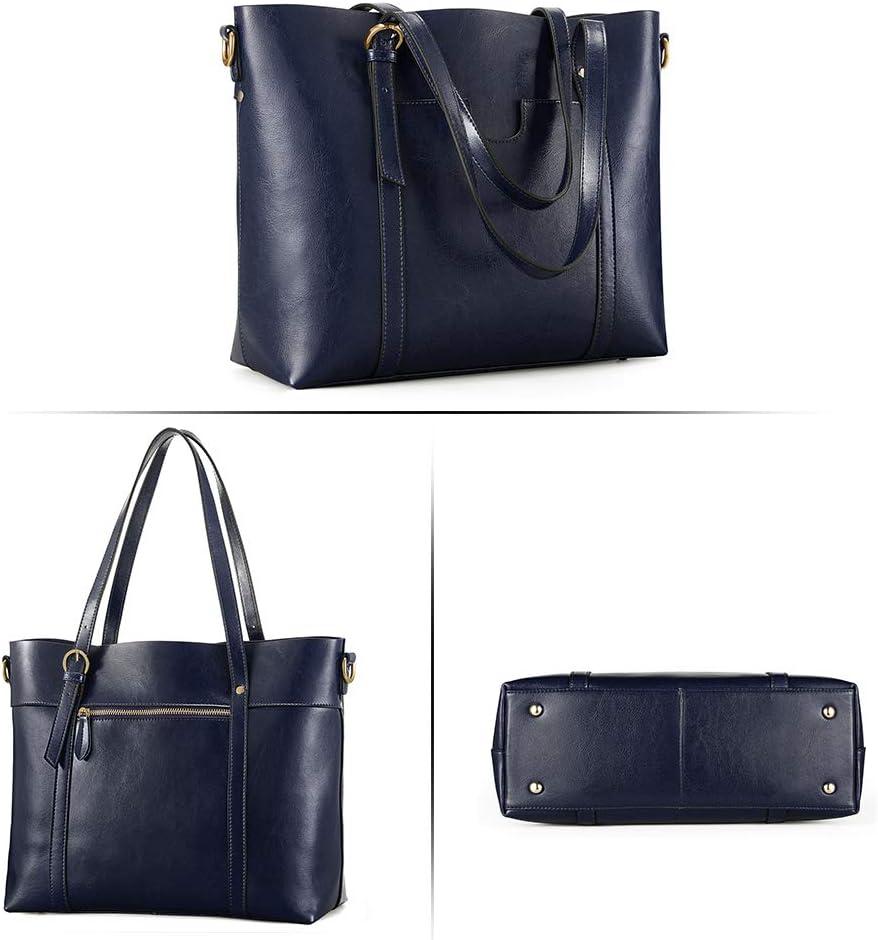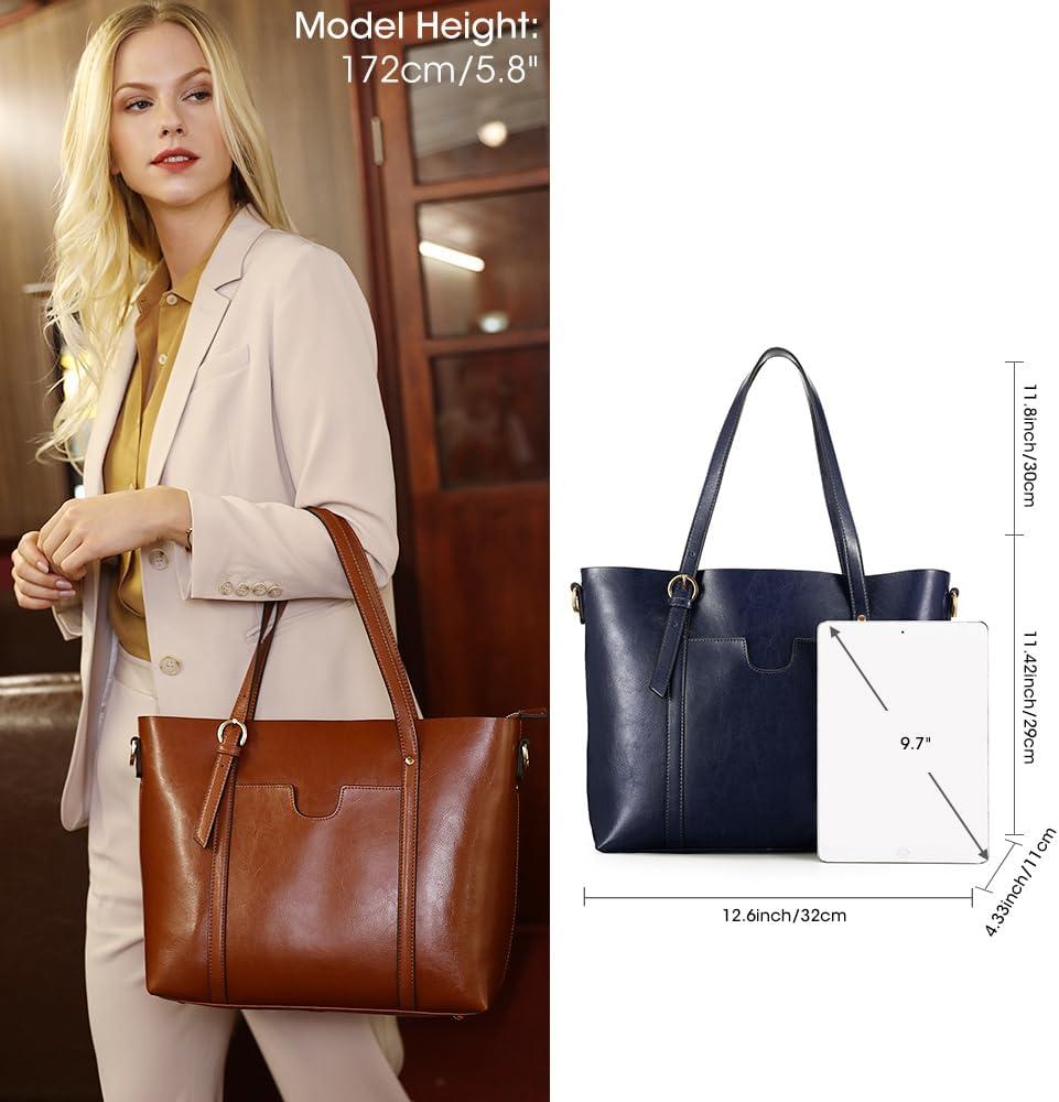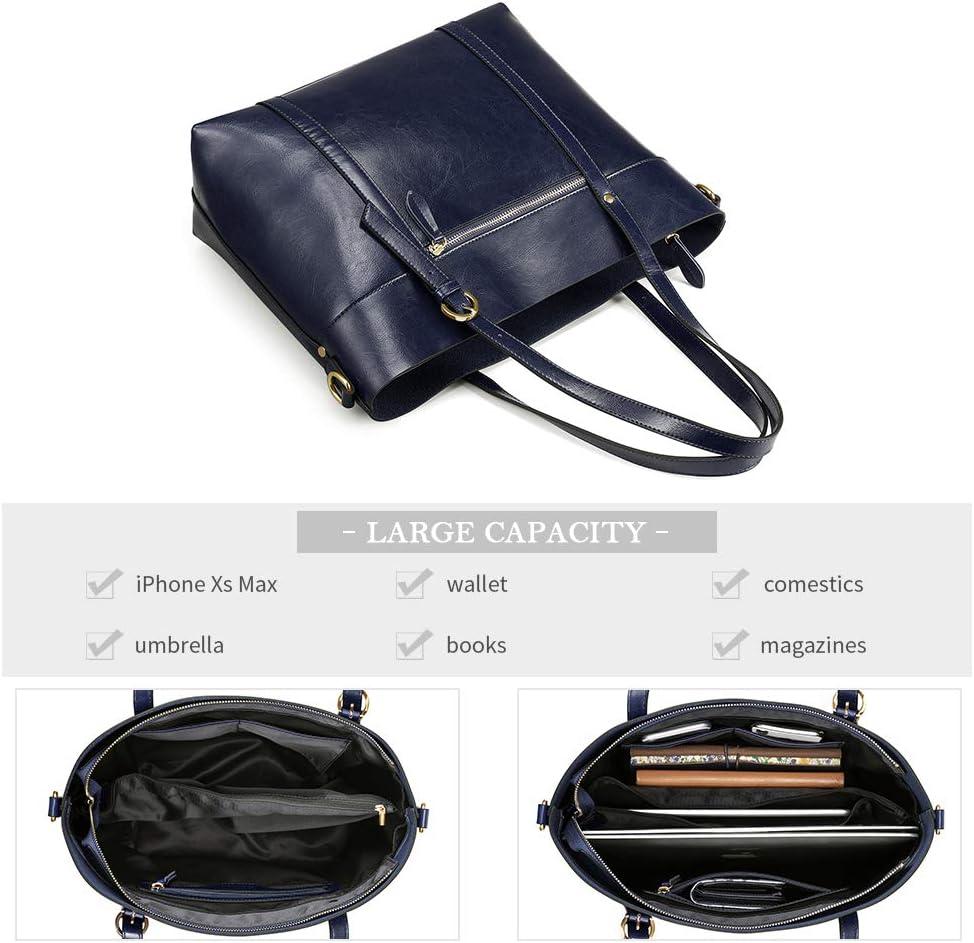 Kattee Genuine Leather Women Tote Bag Soft Handbags Vintage Shoulder Purses Fashion Top Handle Bag Large Capacity(Blue)