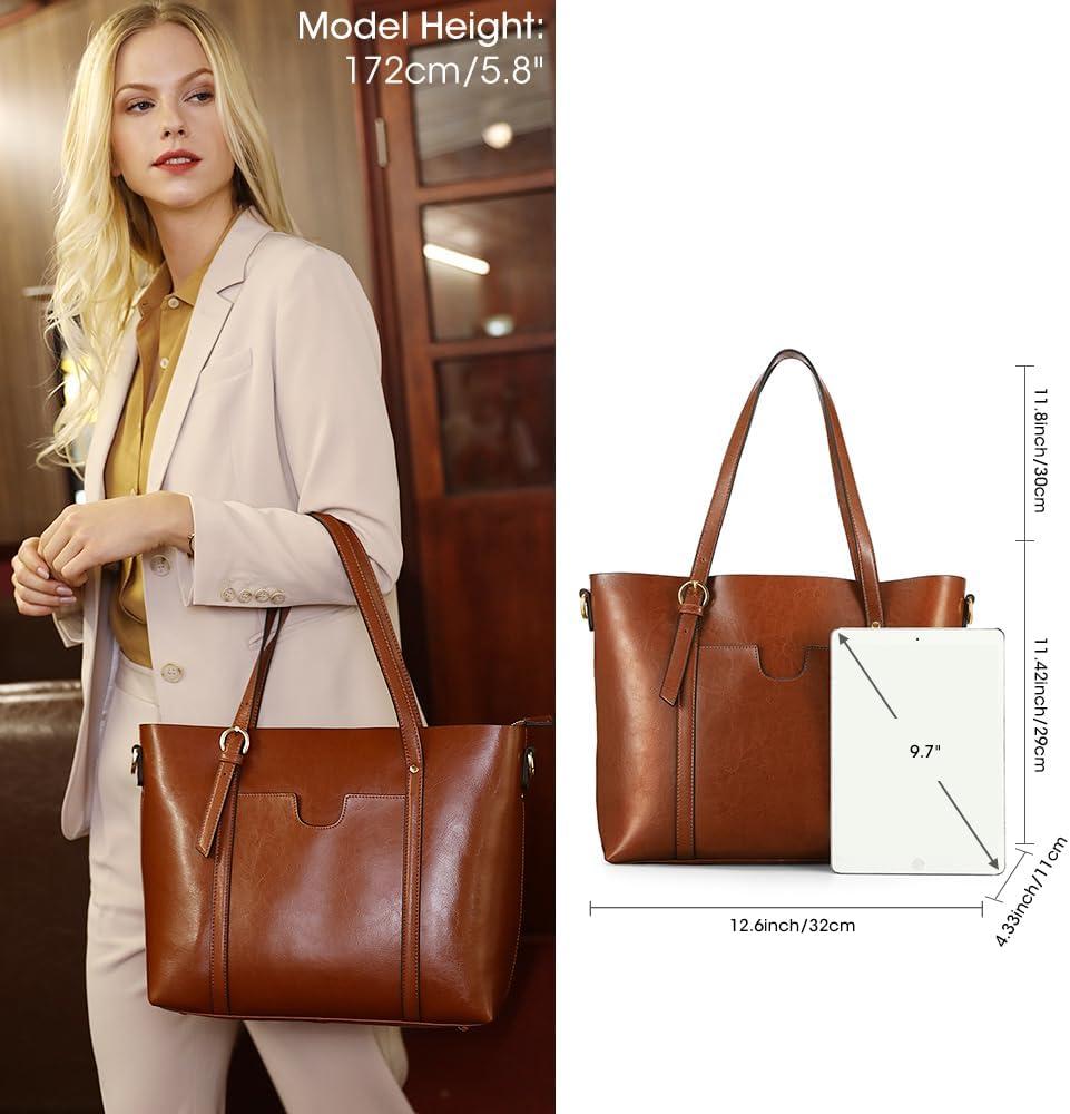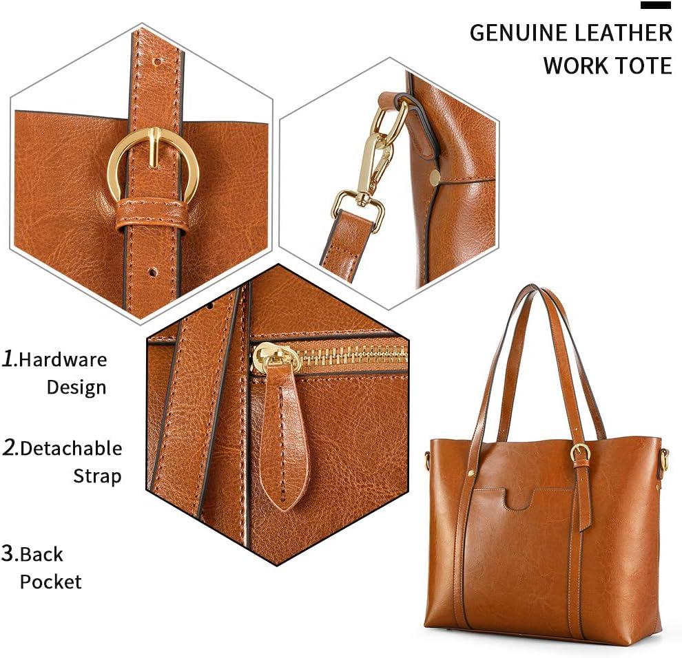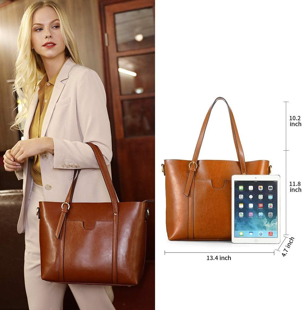 Kattee Genuine Leather Women Tote Bag Soft Handbags Vintage Shoulder Purses Fashion Top Handle Bag Large Capacity(Brown)