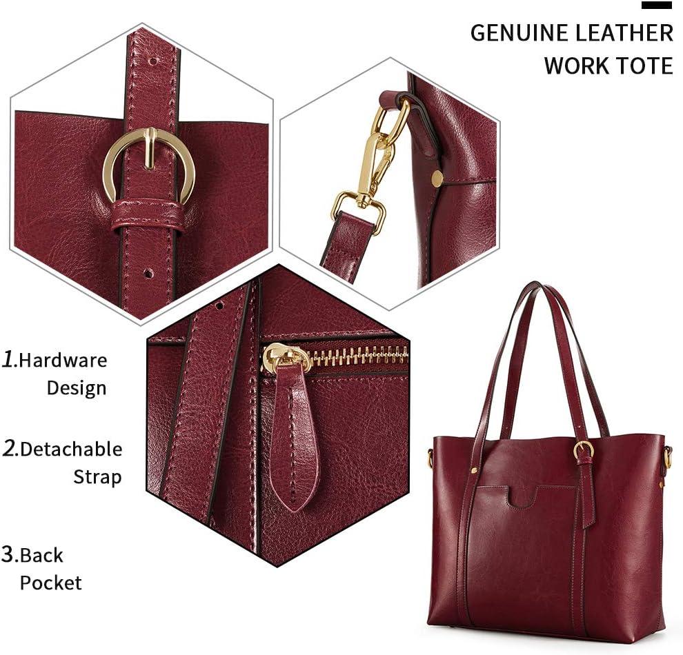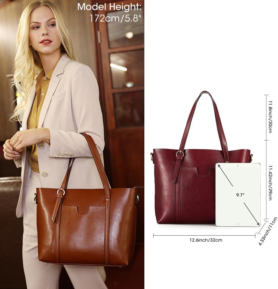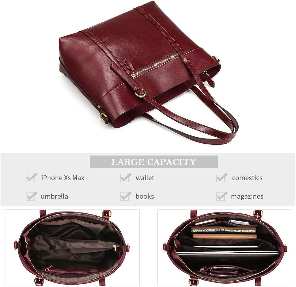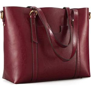 Kattee Genuine Leather Women Tote Bag Soft Handbags Vintage Shoulder Purses Fashion Top Handle Bag Large Capacity(Red)