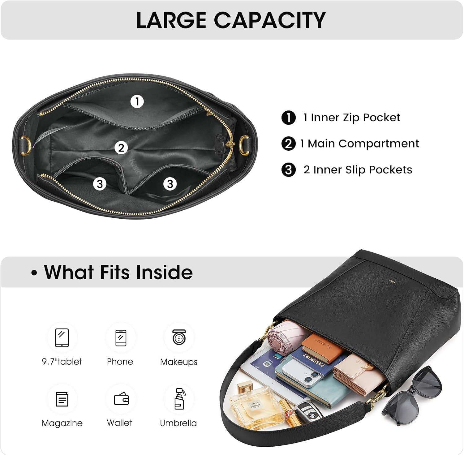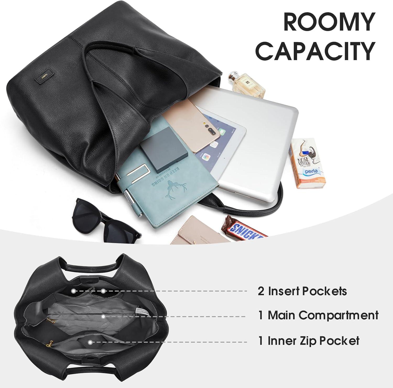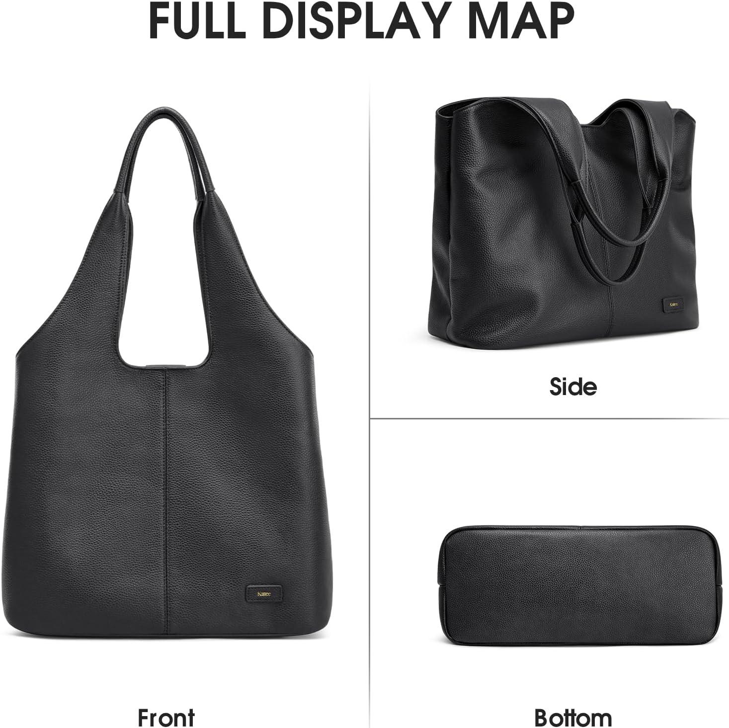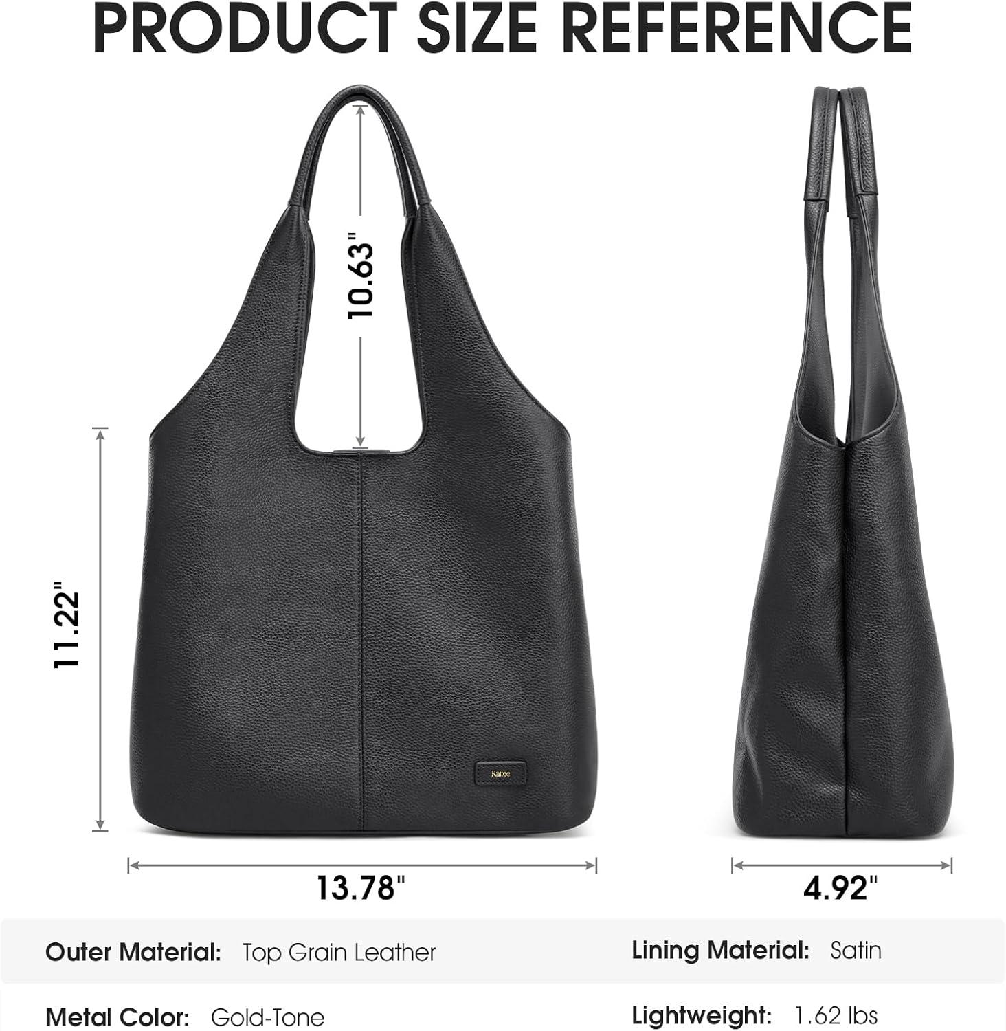 Kattee Leather Tote Bag Purse for Women, Leather Womens Tote Handbags Hobo Shoulder Bags, Large Capacity(Black)