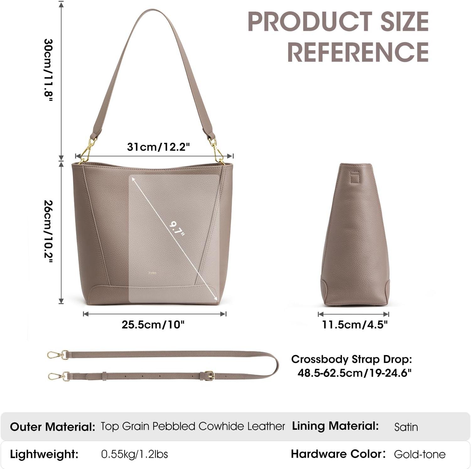 Kattee Leather Purses and Handbags, Bucket Bags for Women, Top Grain Leather Tote Shoulder Crossbody with 2 Straps(Brown)