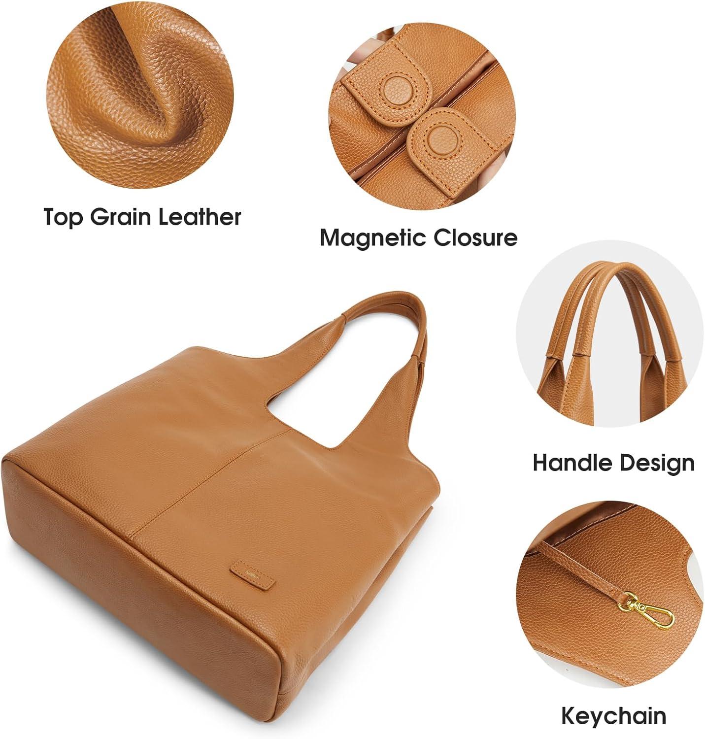 Kattee Leather Tote Bag Purse for Women, Leather Womens Tote Handbags Hobo Shoulder Bags, Large Capacity(Brown)
