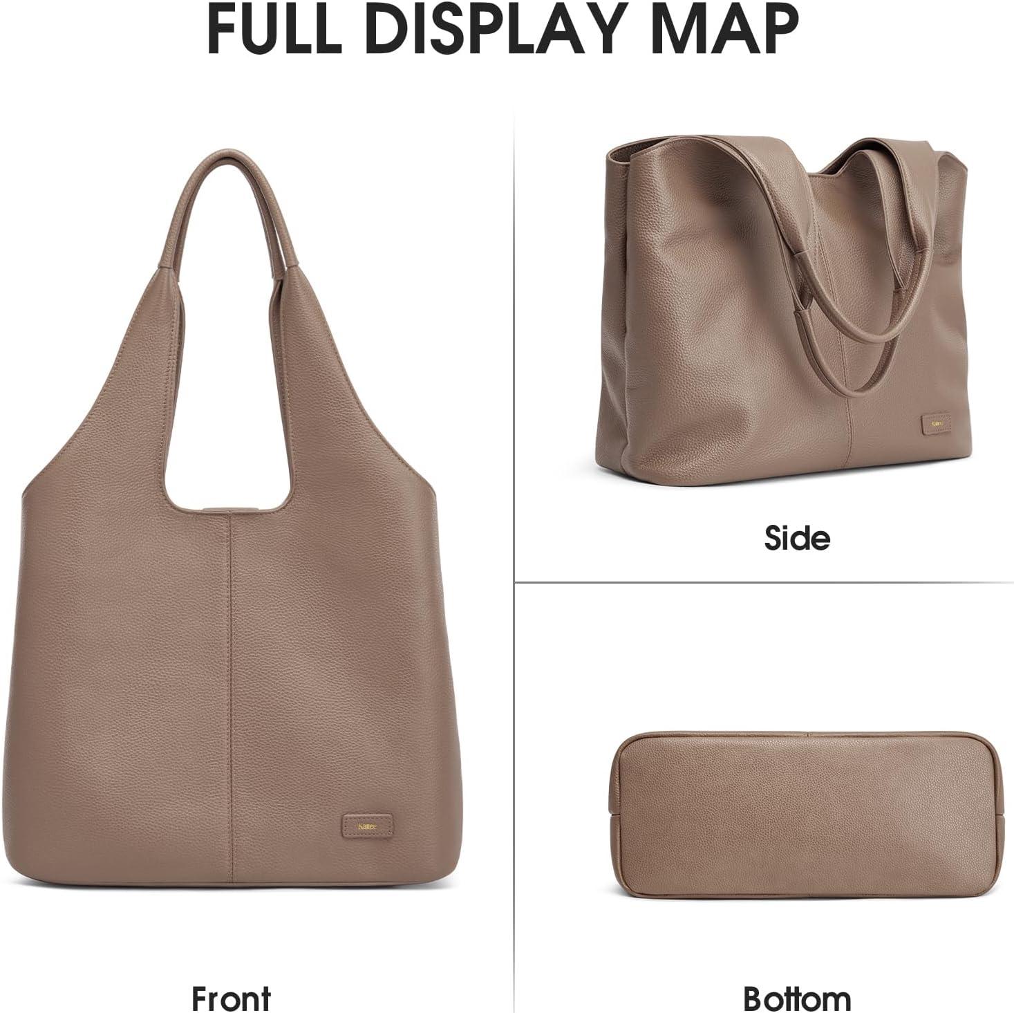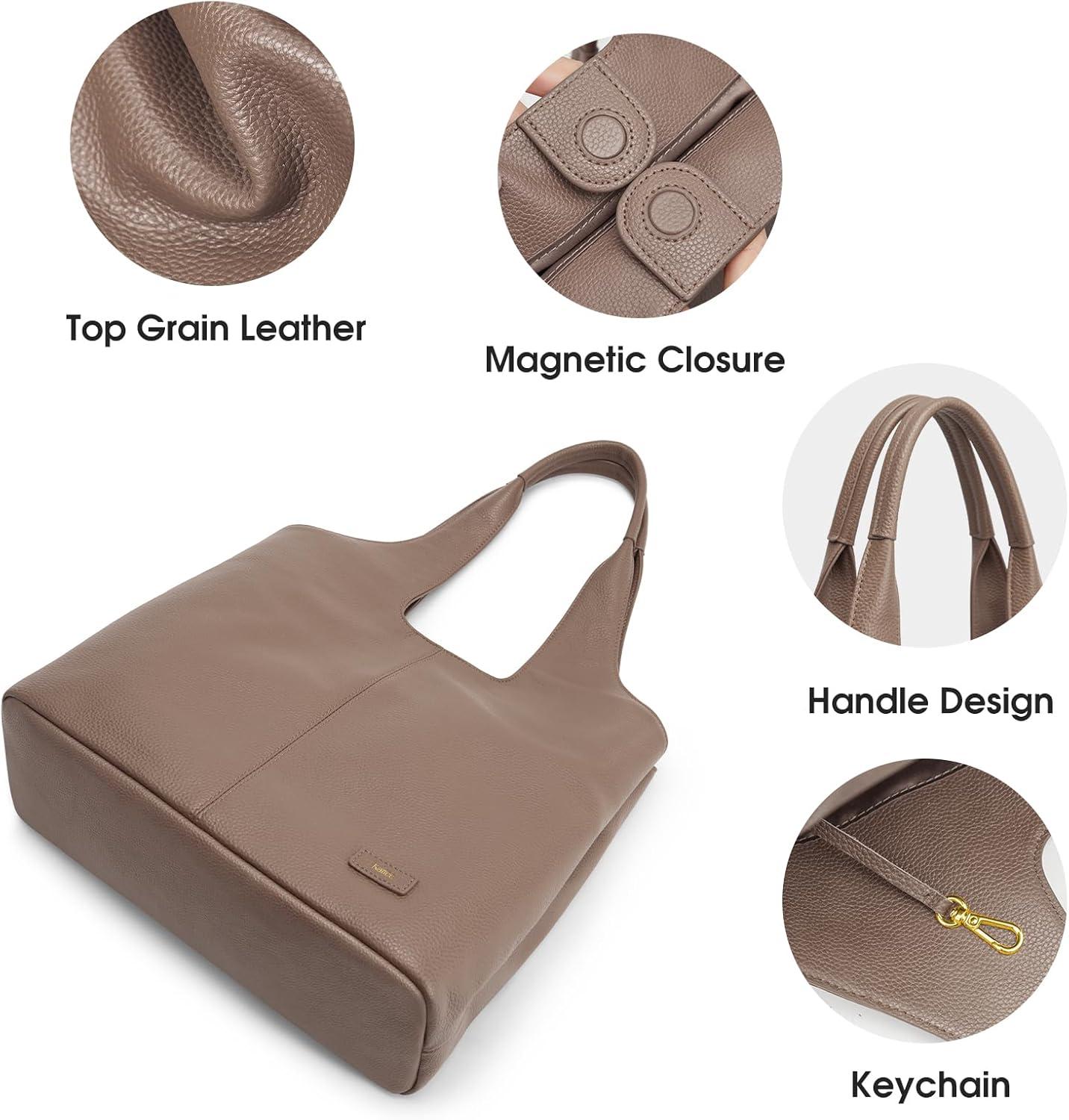 Kattee Leather Tote Bag Purse for Women, Leather Womens Tote Handbags Hobo Shoulder Bags, Large Capacity(Khaki)