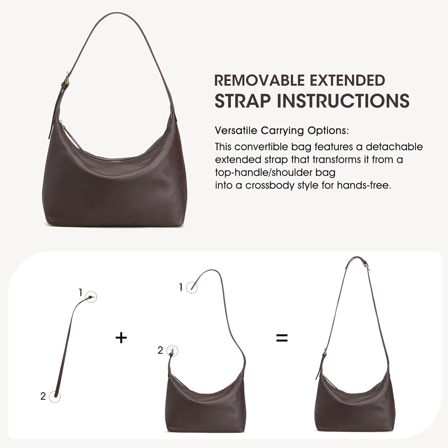 Kattee Genuine Leather Purses and Handbags for Women Trendy, Top Grain Leather Hobo Tote Shoulder Bag with Adjustable Strap(Brown)