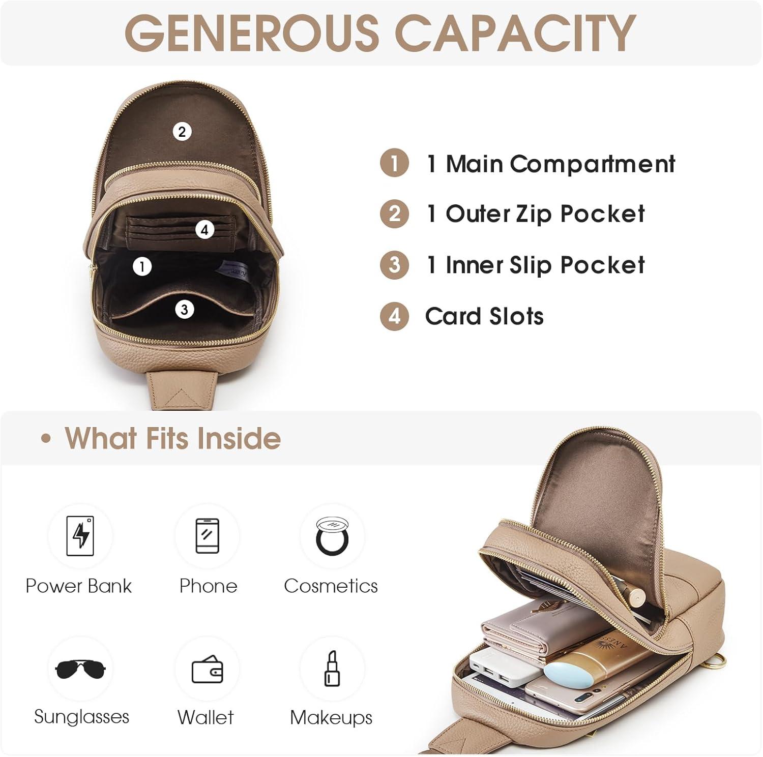Kattee Sling Bag for Women, Leather Crossbody Purses for Women, Sling Backpack Travel Bag with RFID Blocking, Black(Khaki)