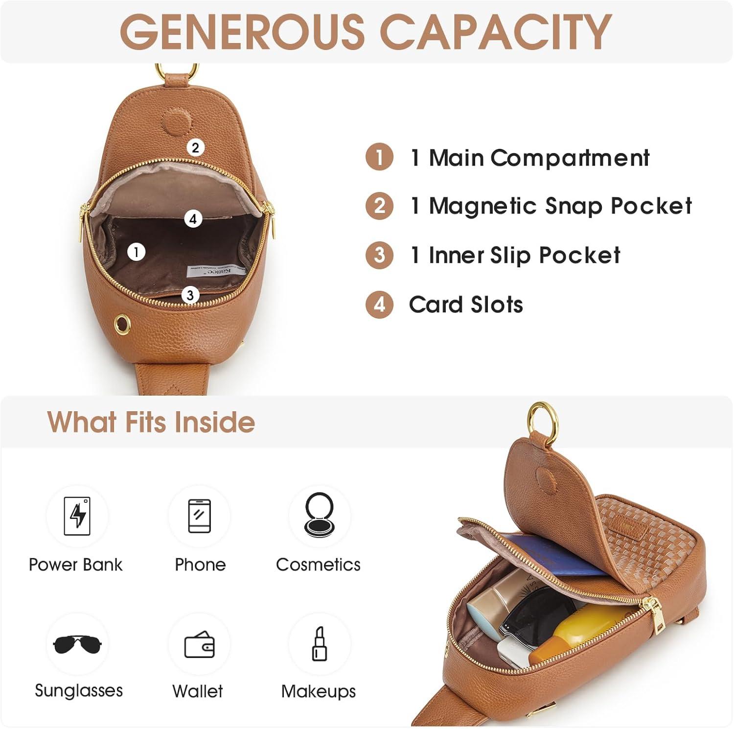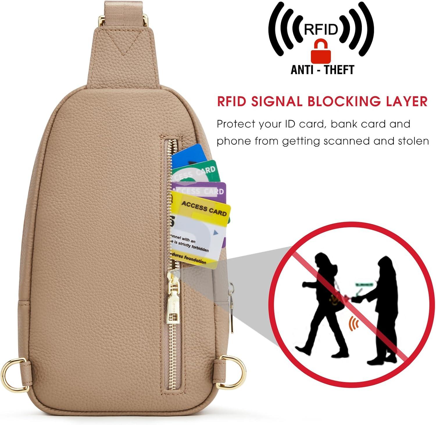 Kattee Sling Bag for Women, Leather Fanny Packs Crossbody Purse, Small Chest Bag with RFID Blocking, Black(Khaki)