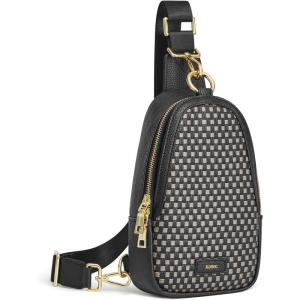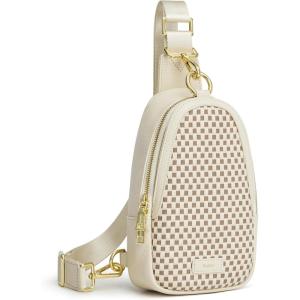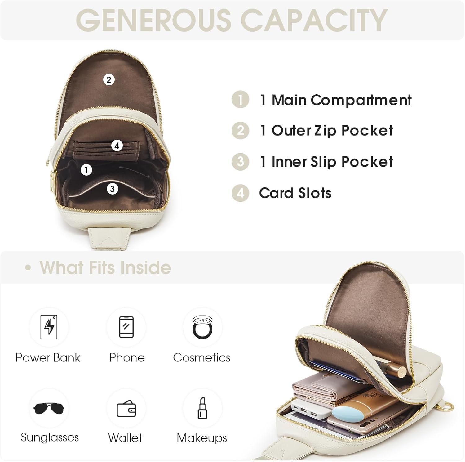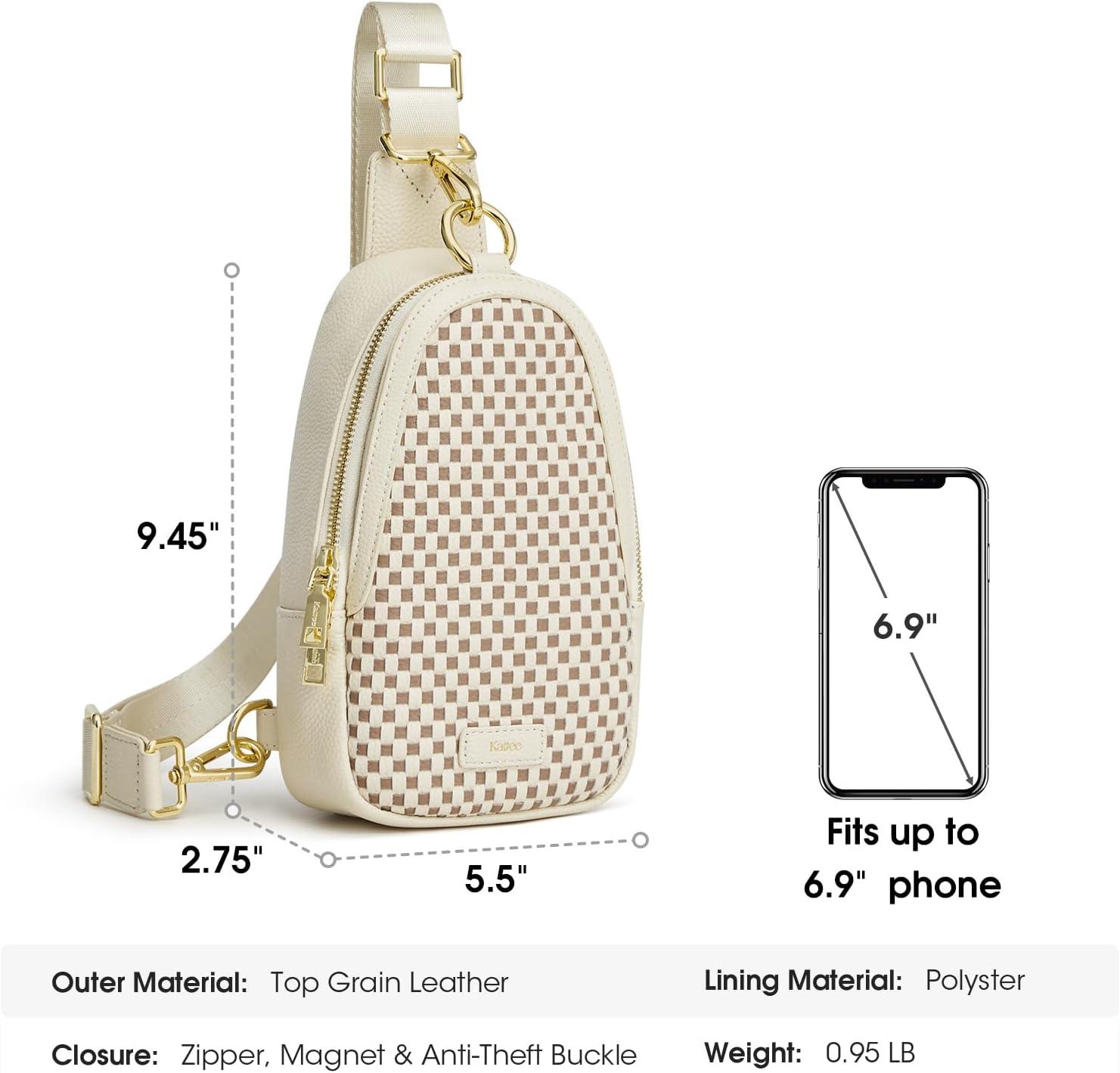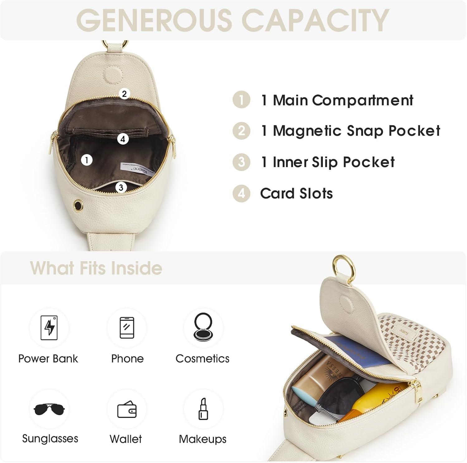 Kattee Sling Bag for Women, Leather Fanny Packs Crossbody Purse, Small Chest Bag with RFID Blocking, Black(Beige)