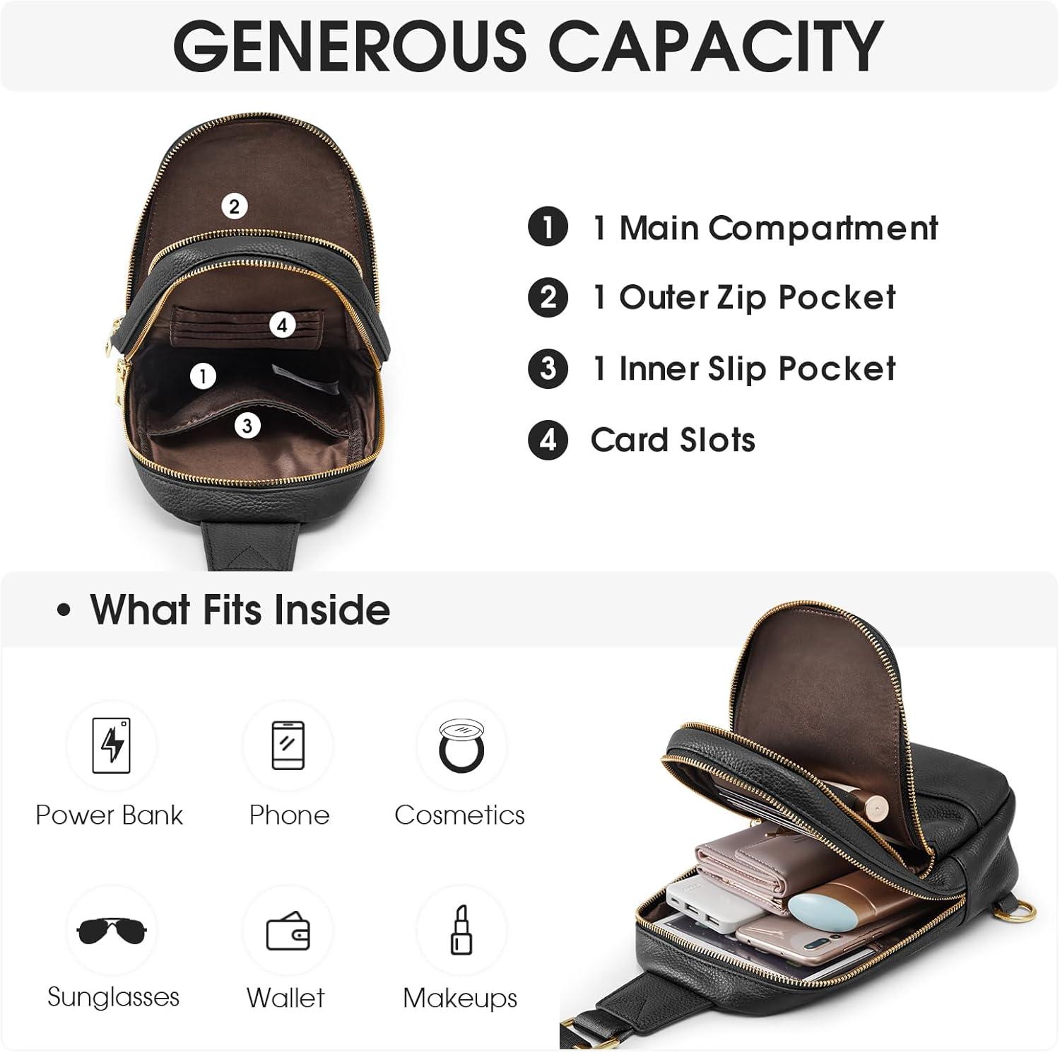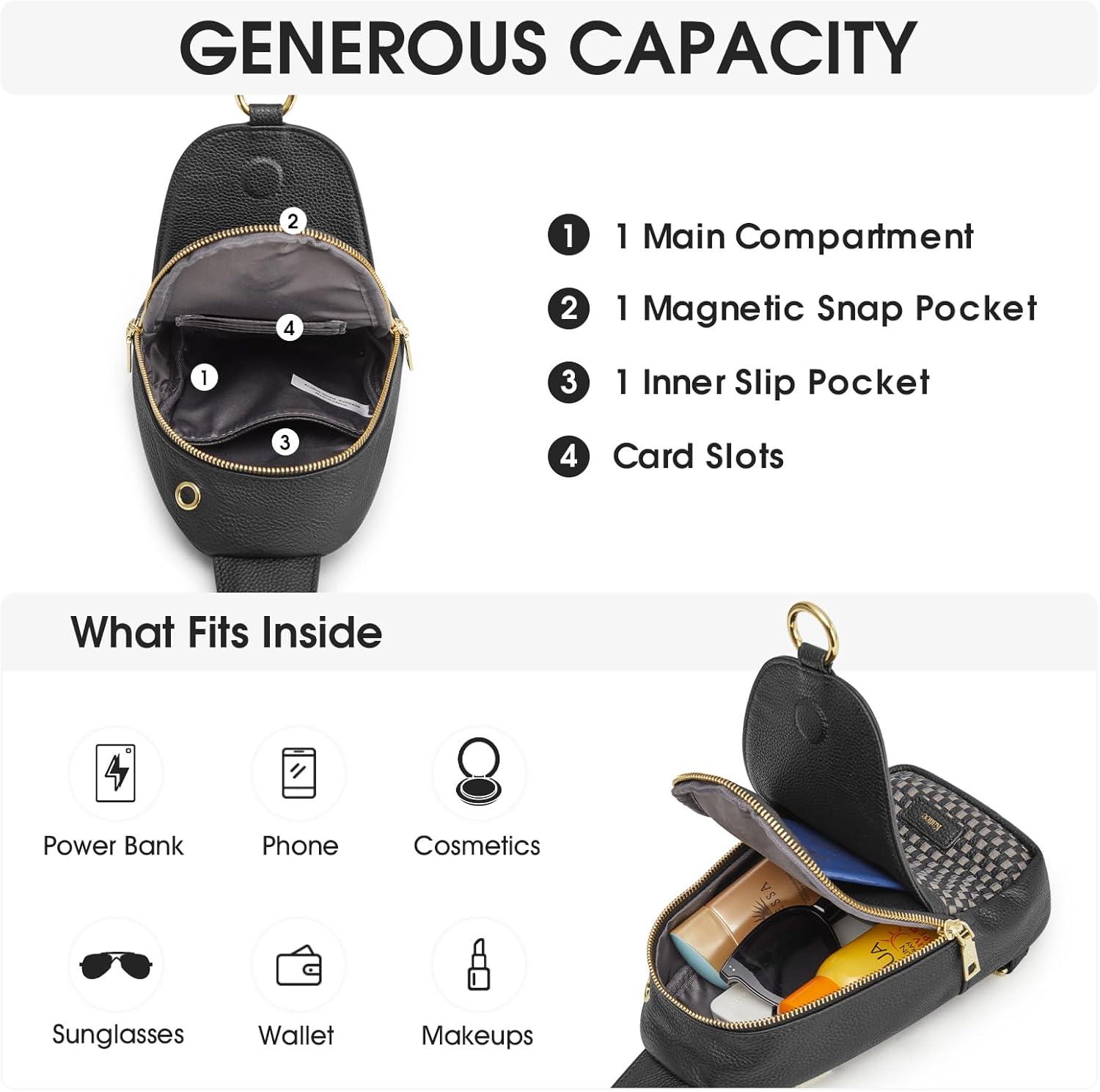 Kattee Sling Bag for Women Crossbody, Soft Leather Fanny Packs for Women, Small Crossbody Chest Bag with RFID Blocking(Black)