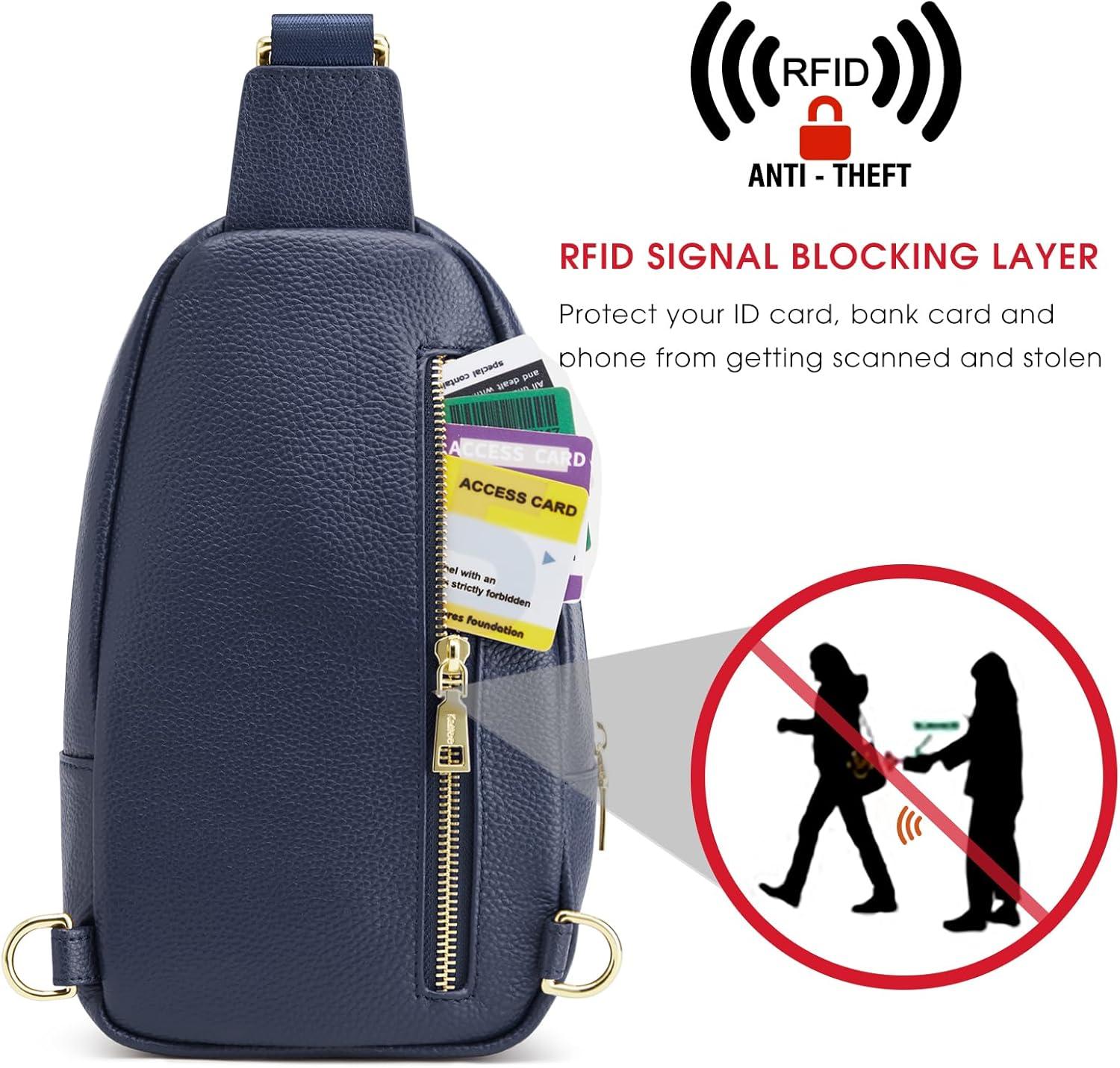 Kattee Sling Bag for Women Crossbody, Soft Leather Fanny Packs for Women, Small Crossbody Chest Bag with RFID Blocking(Blue)