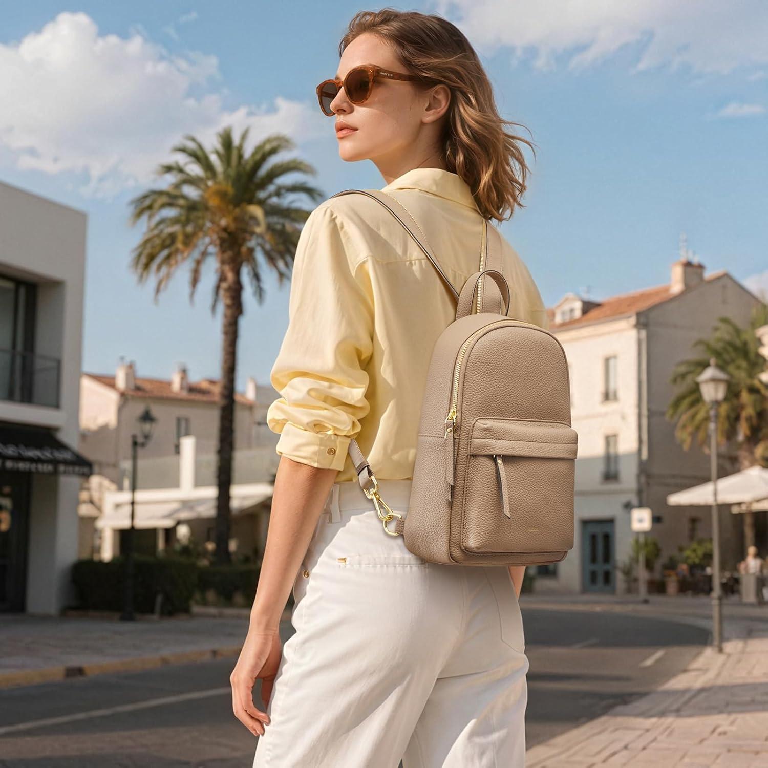 Kattee Sling Bag for Women, Leather Crossbody Purses for Women, Sling Backpack Travel Bag with RFID Blocking, Black(Beige)