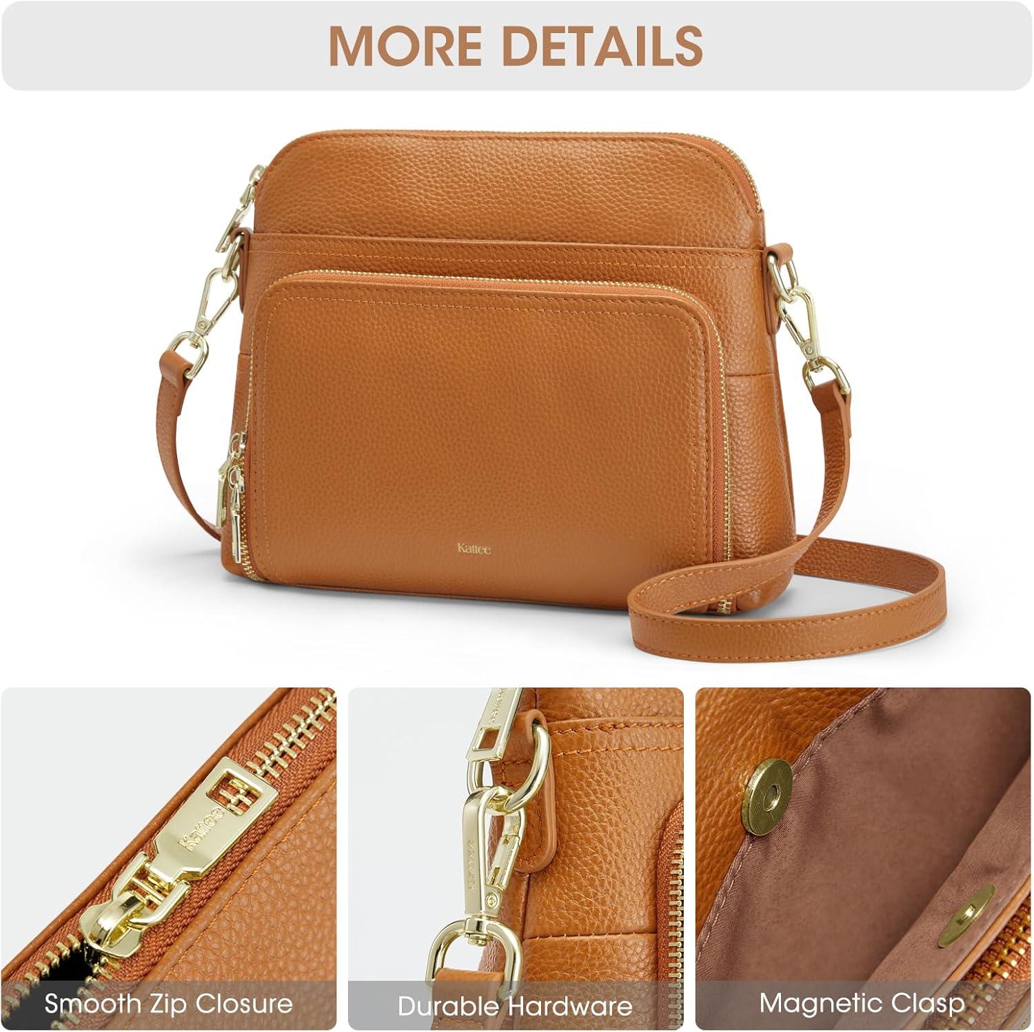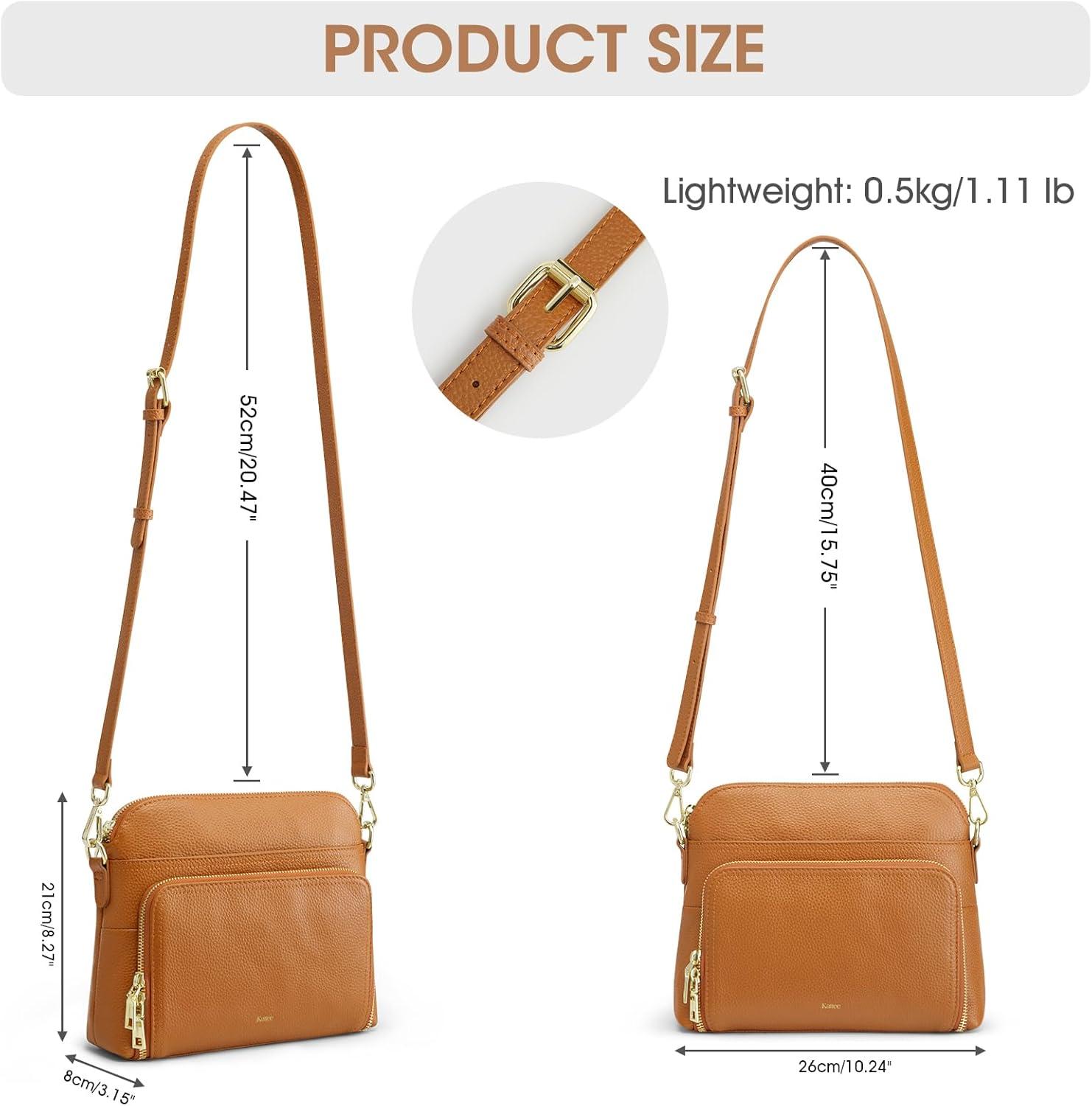 Kattee Leather Crossbody Bags for Women Trendy, Small Purses Handbags Shoulder Bag, Genuine Leather Cross Body Bag for Woman(Genuine Leather – Light Brown)