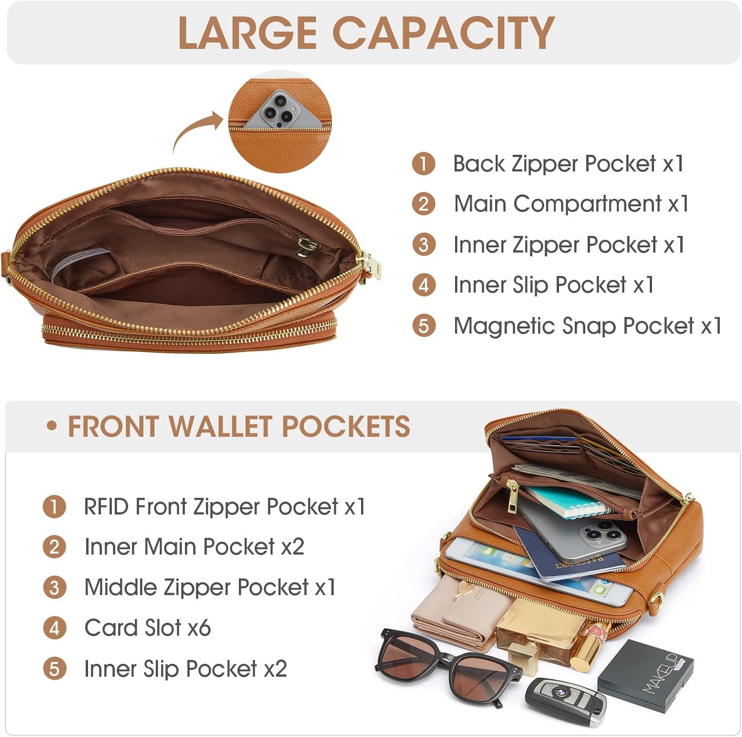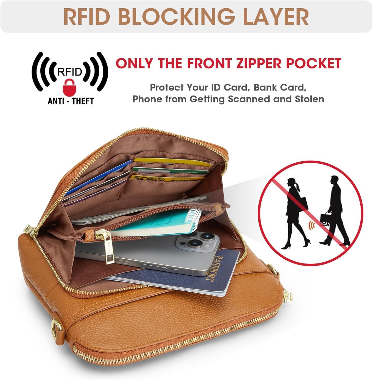 Kattee Small Crossbody Shoulder Bag for Women, Women’s Genuine Leather Crossbody Purse with RFID Wallet(Brown)