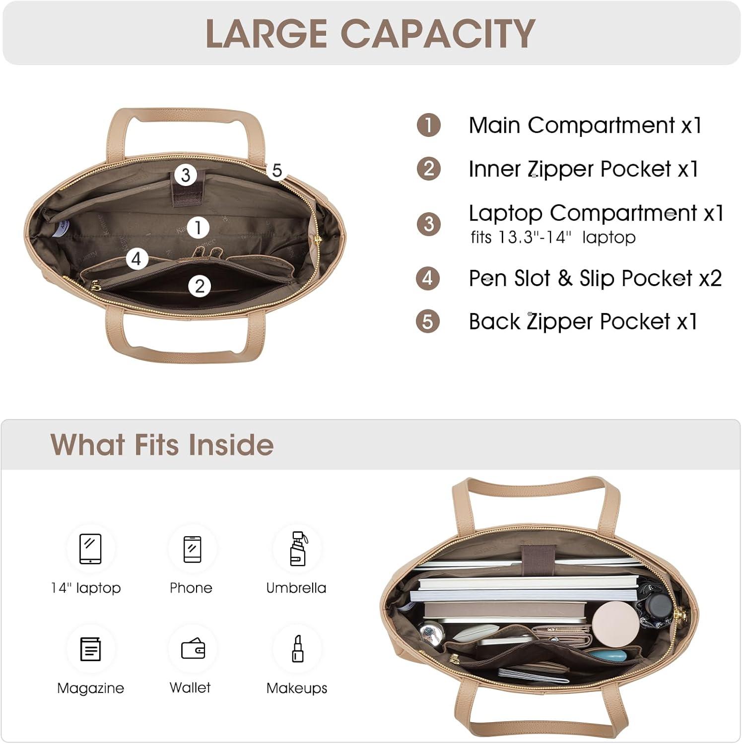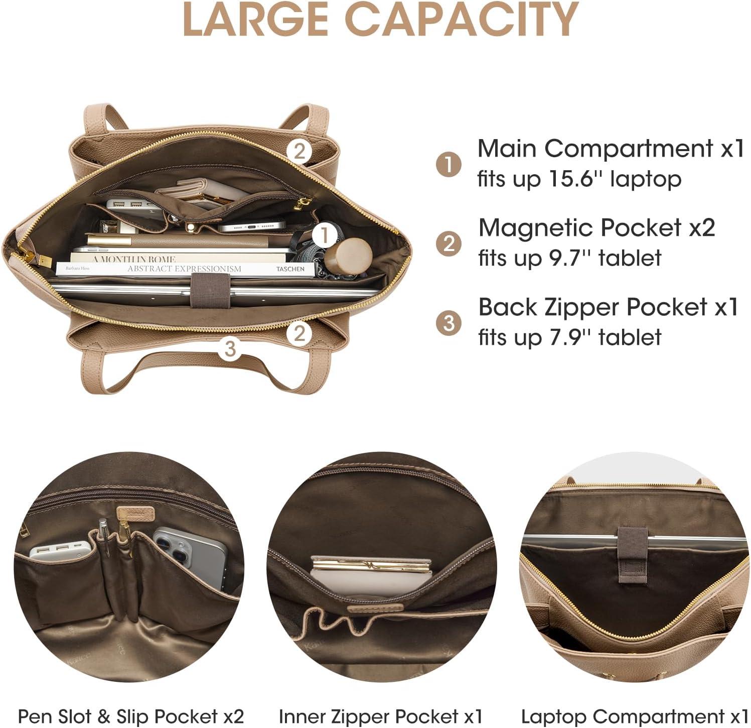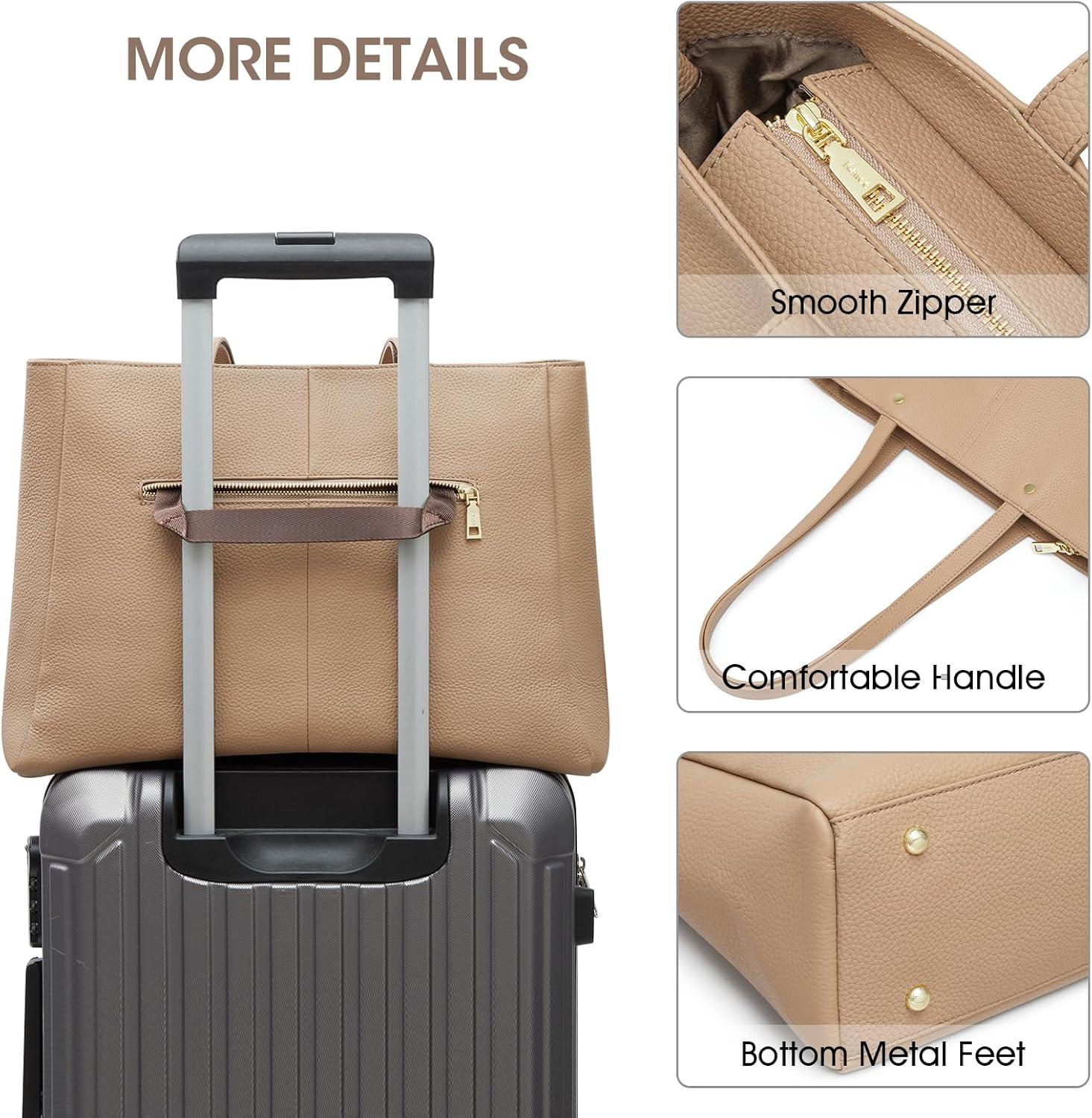 Kattee Women’s Soft Leather Work Tote Shoulder Bag,Large Capacity Designer Satchel Handbags with Luggage Sleeve(Khaki)
