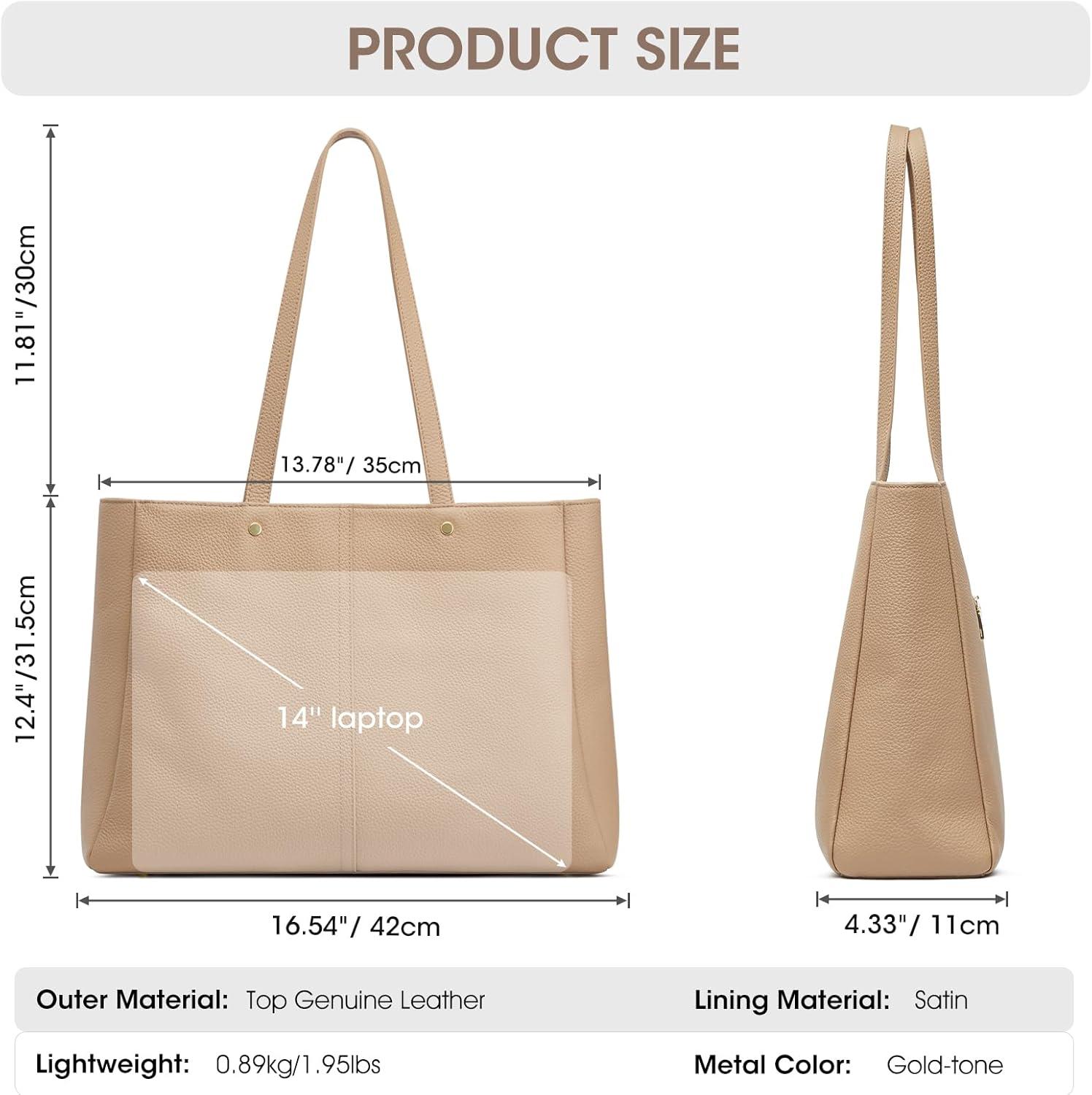 Kattee Work Tote Bags for Women, Large Genuine Leather Shoulder Handbags with Laptop Compartment(Apricot)