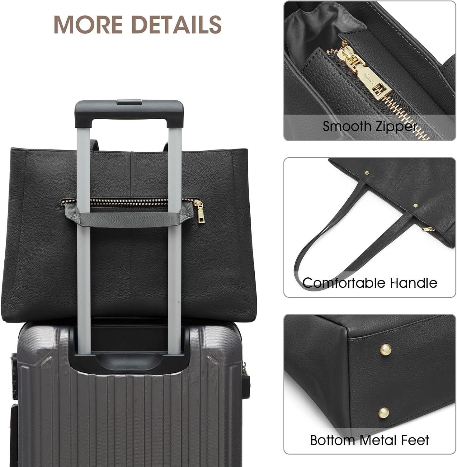 Kattee Women’s Soft Leather Work Tote Shoulder Bag,Large Capacity Designer Satchel Handbags with Luggage Sleeve(Black)