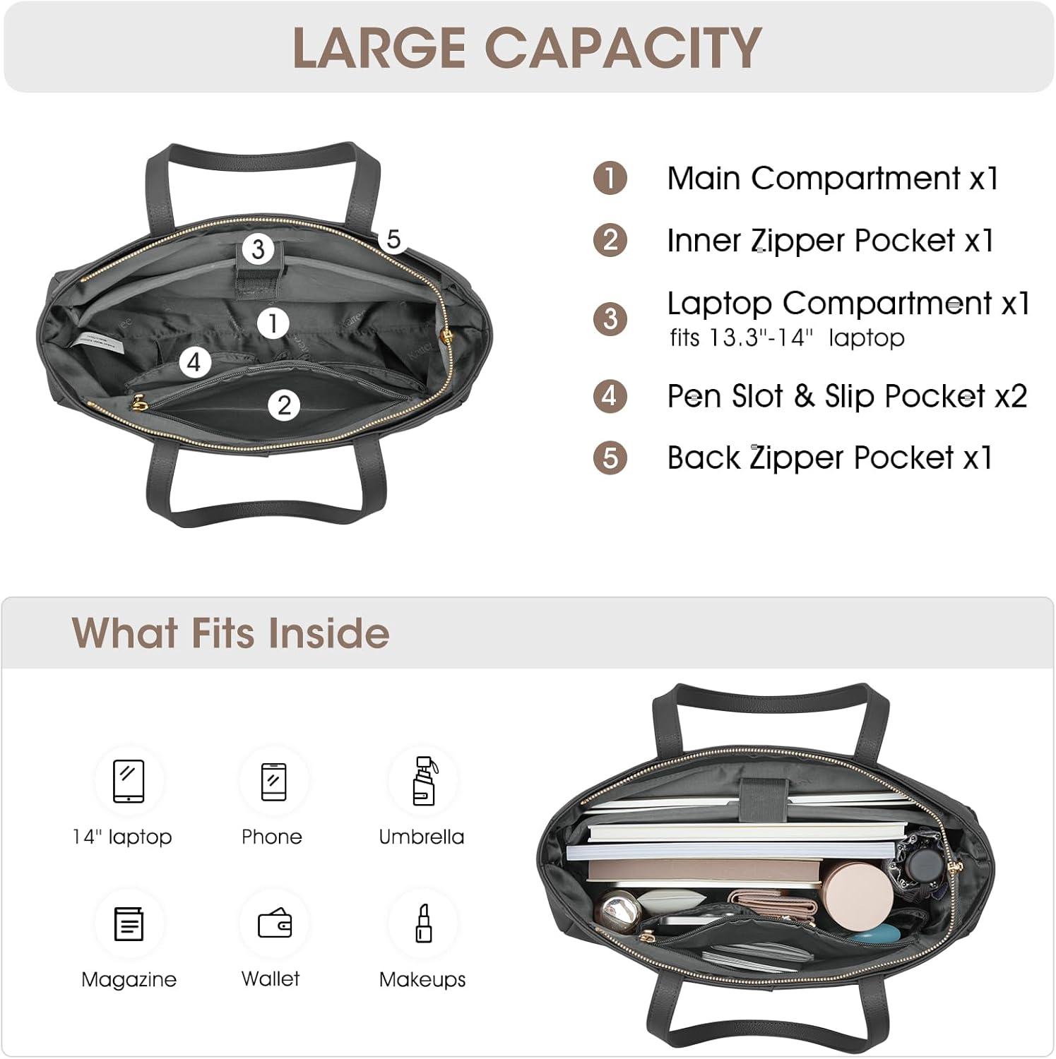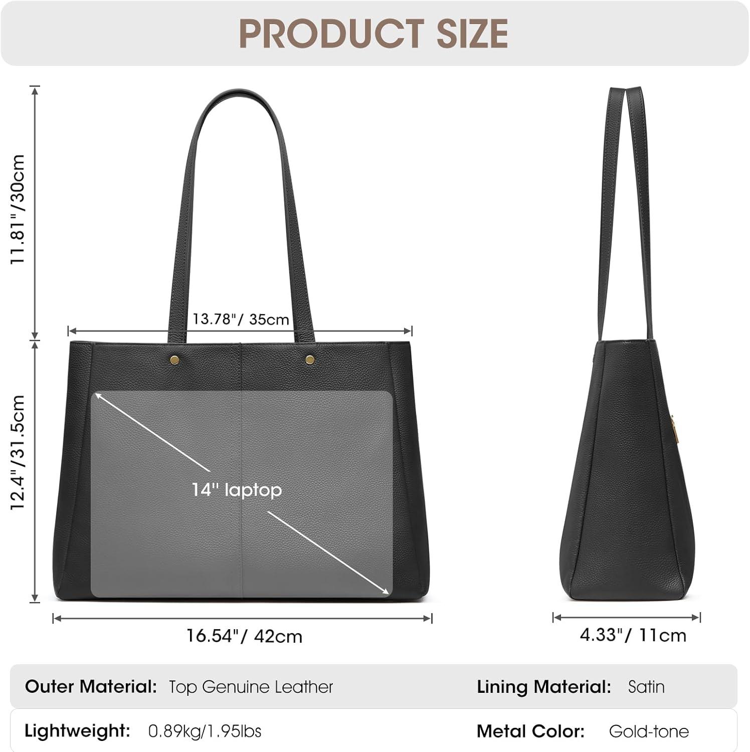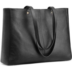 Kattee Work Tote Bags for Women, Large Genuine Leather Shoulder Handbags with Laptop Compartment(Black)