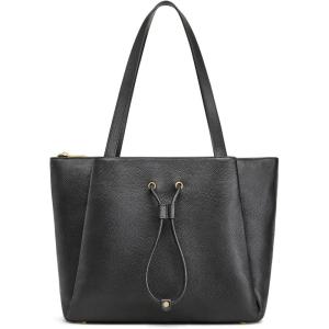 Kattee Leather Tote Bags for Women Soft Shoulder Purses Handbags Travel Work Bags Top Grain Leather Large Capacity(Black)