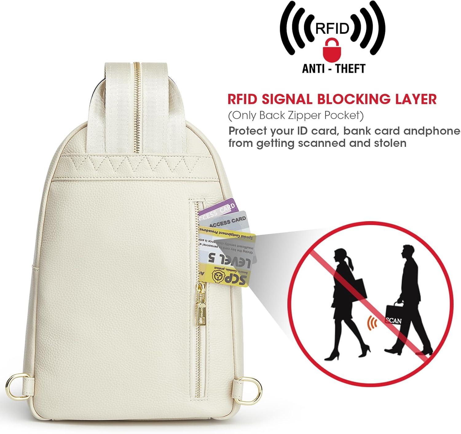 Kattee Sling Bag for Women Crossbody Fanny Packs Chest Bag Top Grain Leather Daypack Backpack RFID Blocking Travel(Beige)