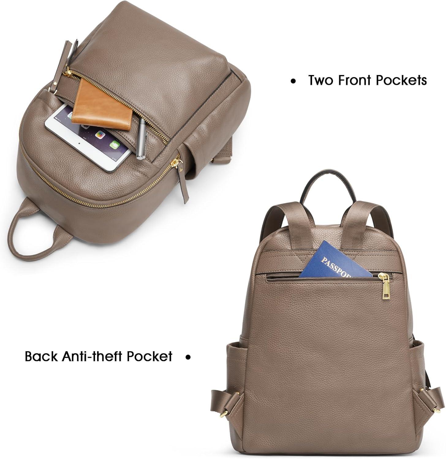 Kattee Genuine Leather Backpack Purse for Women Multi-functional Elegant Daypack Soft Leather Shoulder Bag Shopping Trip, Medium, Brown(Khaki)