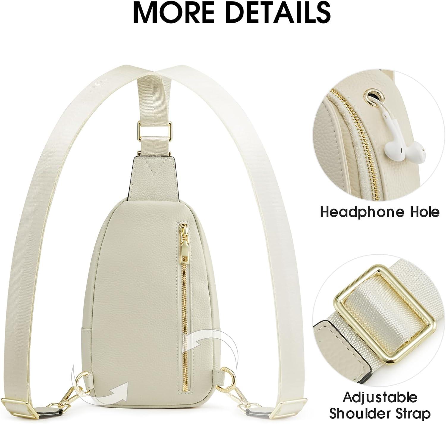 Kattee Leather Sling Bag for Women, Womens Leather Fanny Crossbody Purse for Travel,Small Sling Bag with RFID Blocking(Beige)