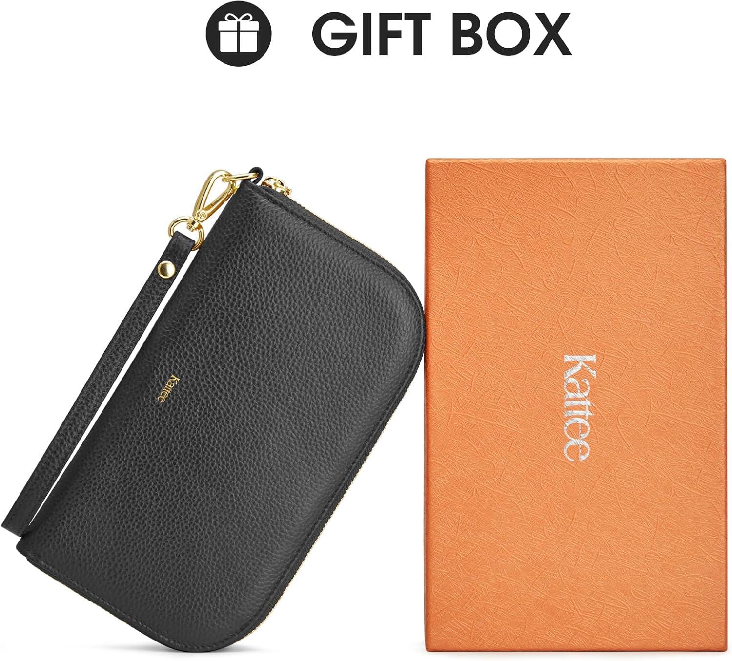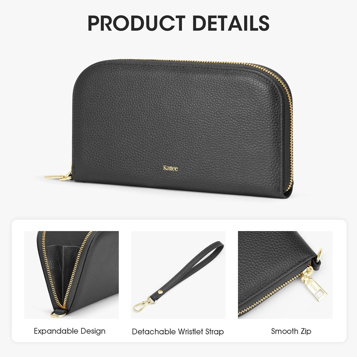 Kattee RFID Wallet Women, Leather Wristlet Wallets for Women,Slim Clutch Purses Card Holder with Removable Wrist Strap(Black)