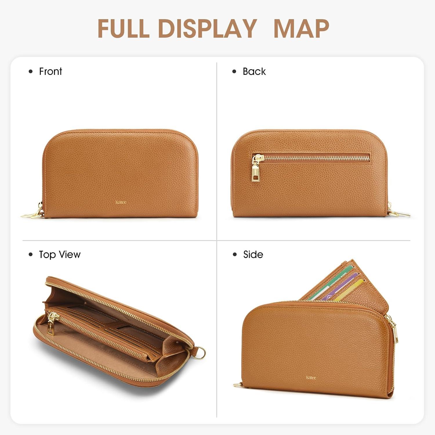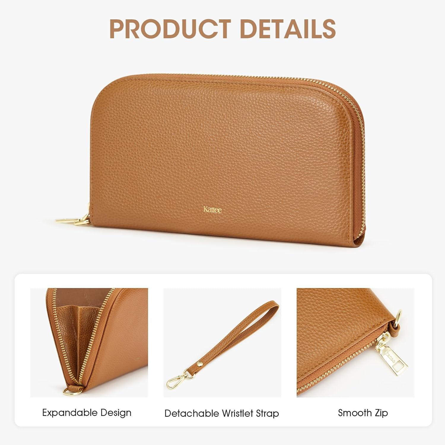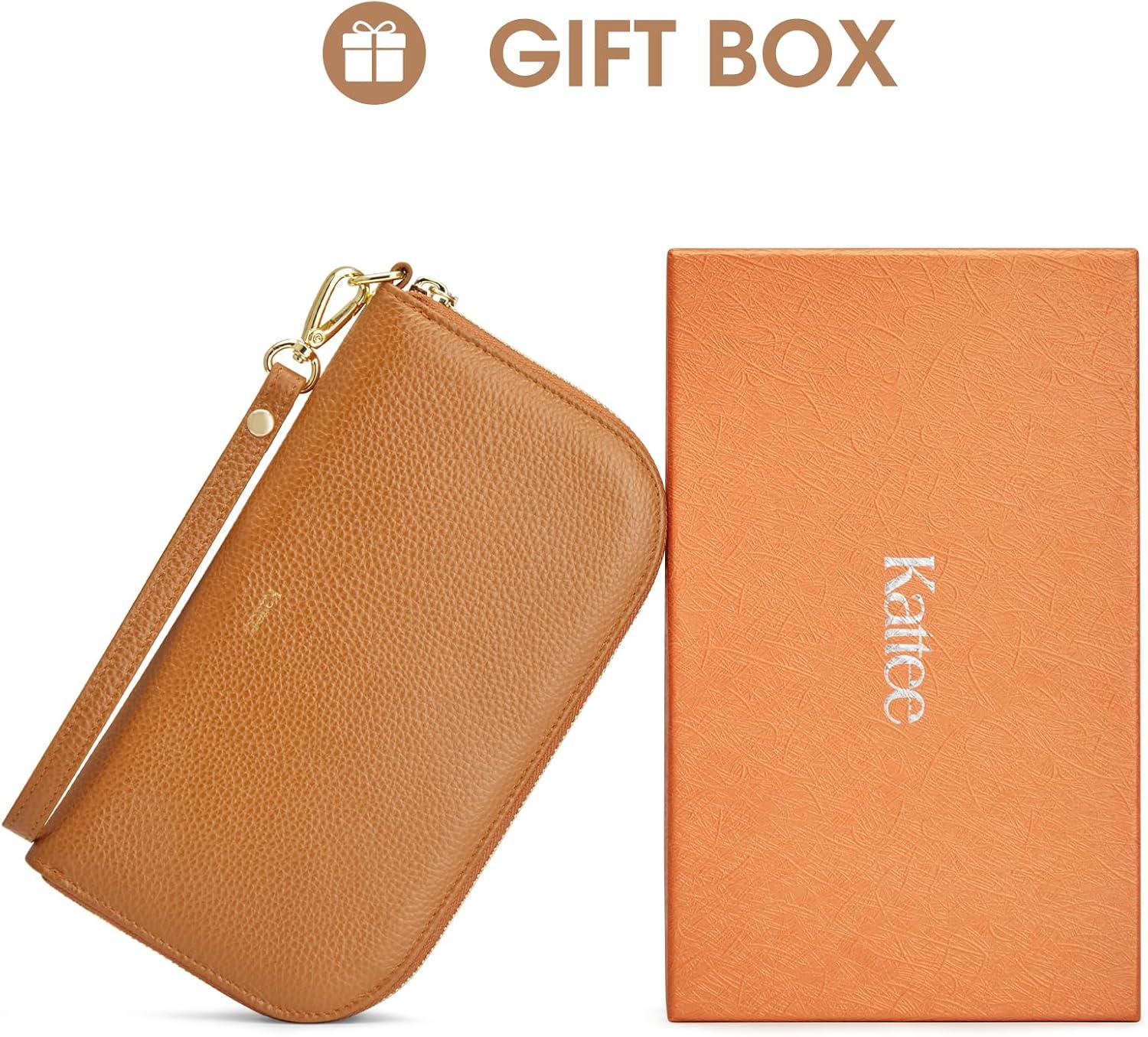 Kattee RFID Wallet Women, Leather Wristlet Wallets for Women,Slim Clutch Purses Card Holder with Removable Wrist Strap(Brown)