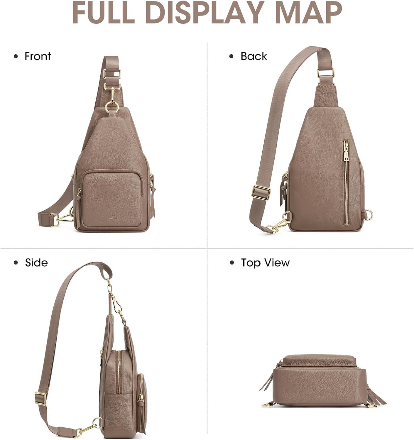 Kattee Small Sling Bag for Women, Leather Fanny Packs Crossbody Purse, Chest Bag for Travel with RFID Blocking, Black(Khaki)