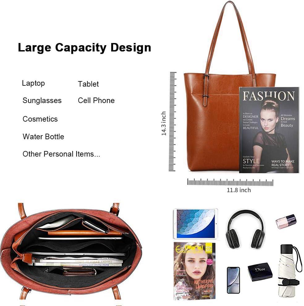 Kattee Vintage Genuine Leather Tote Shoulder Handbag for Woman with Adjustable Handles(Light Brown)