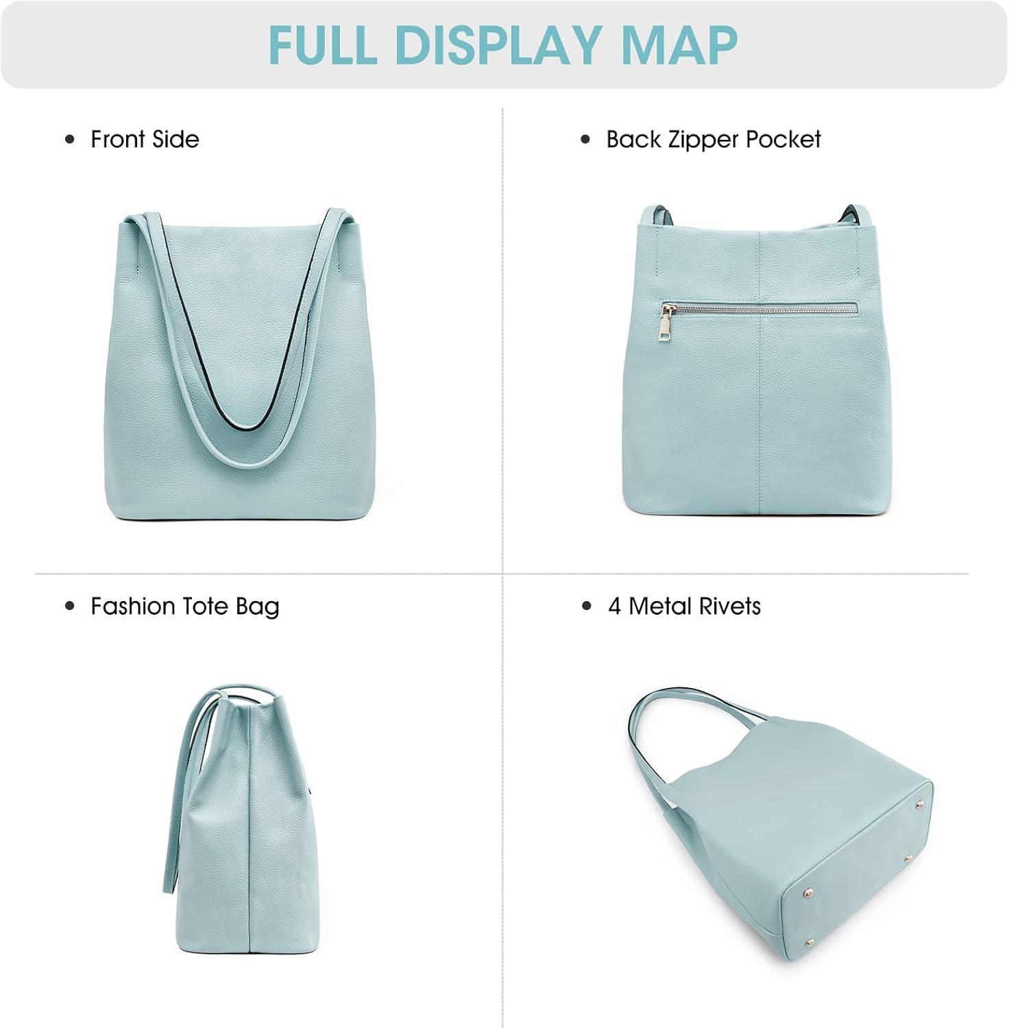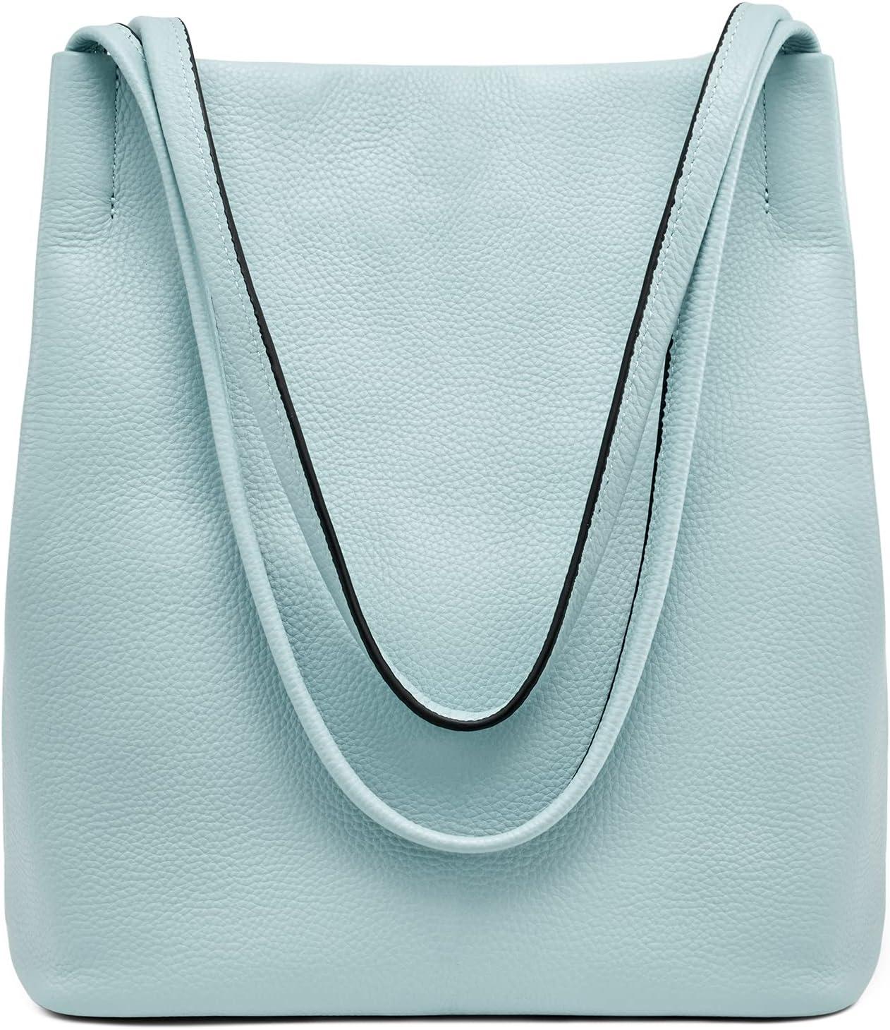 Kattee Women Soft Genuine Leather Totes Shoulder Bag Purses and Handbags with Top Magnetic Snap Closure(Sky Blue)