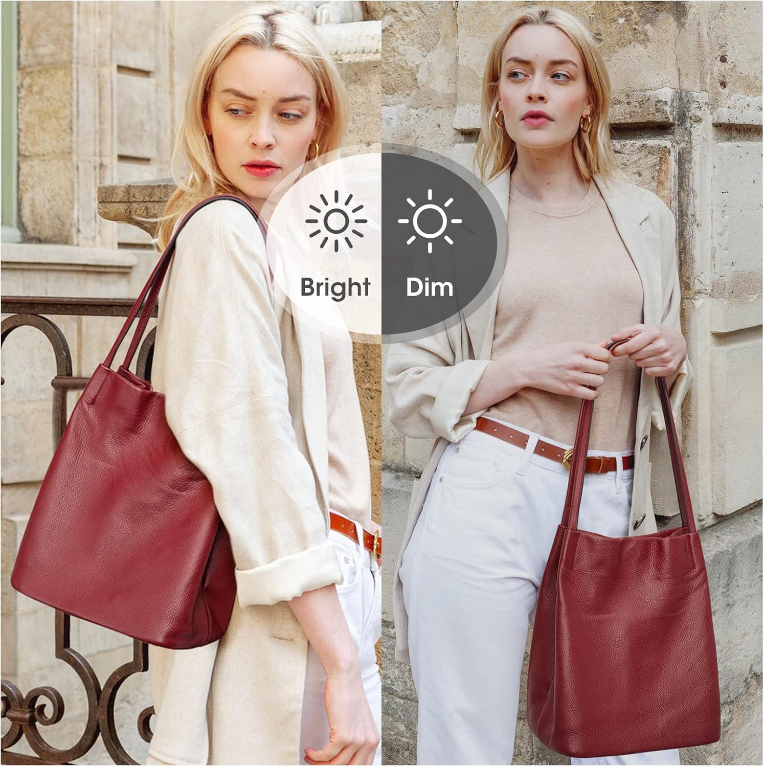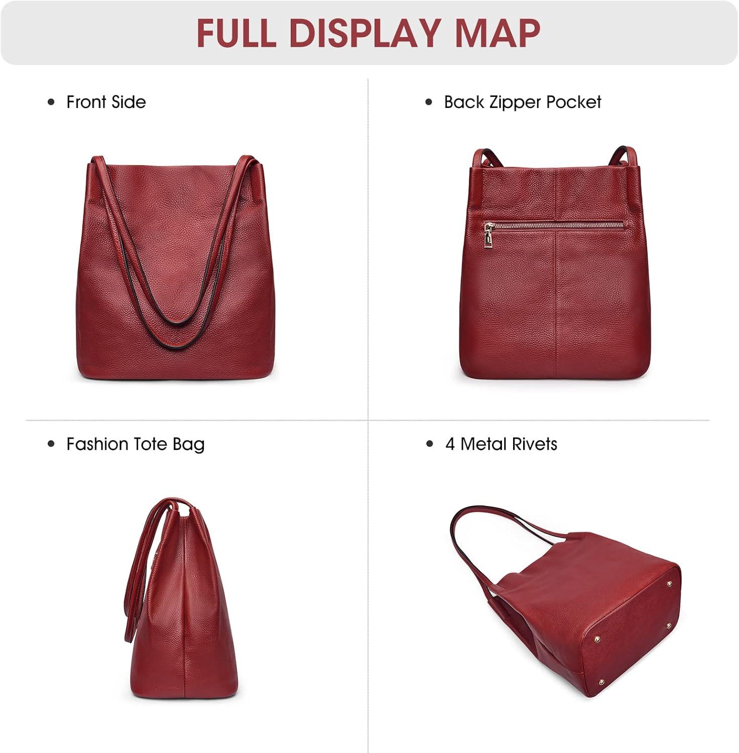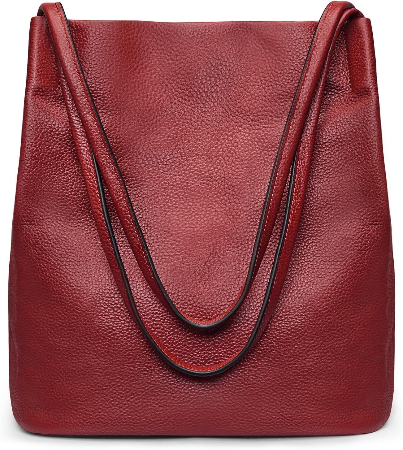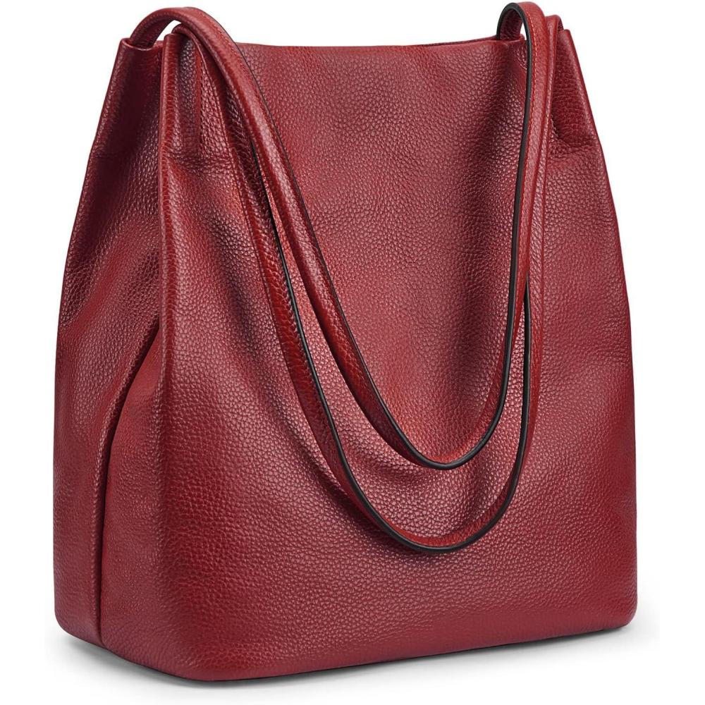 Kattee Women Soft Genuine Leather Totes Shoulder Bag Purses and Handbags with Top Magnetic Snap Closure(Wine Red)