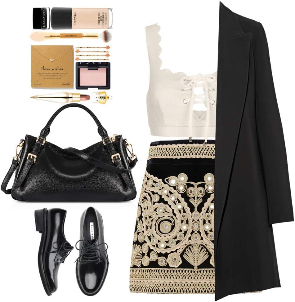 Kattee Women’s Soft Genuine Leather Satchel Purses Top Handle Crossbody Bags Ladies Designer Medium Size Hobo Handbags(Black)