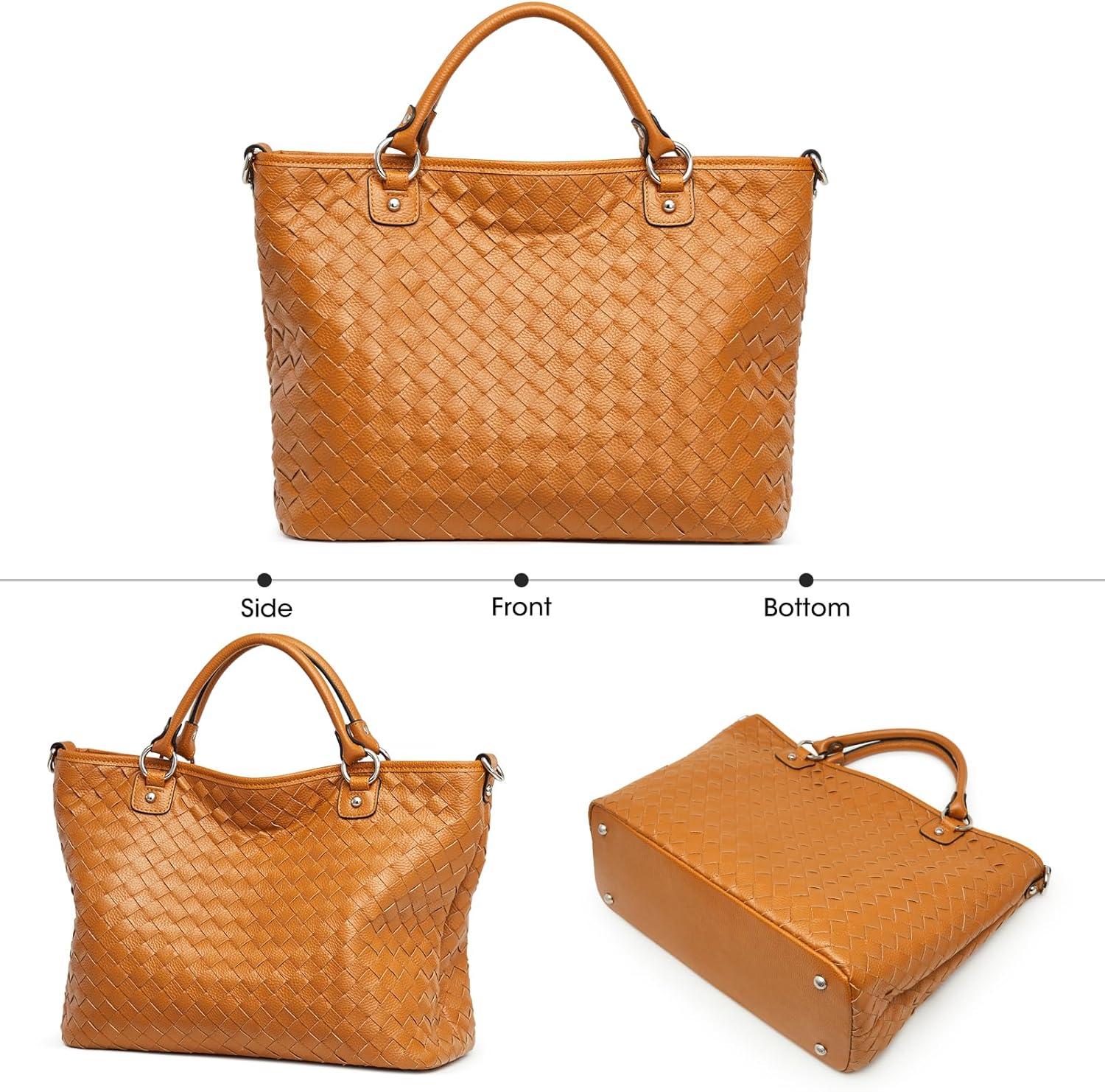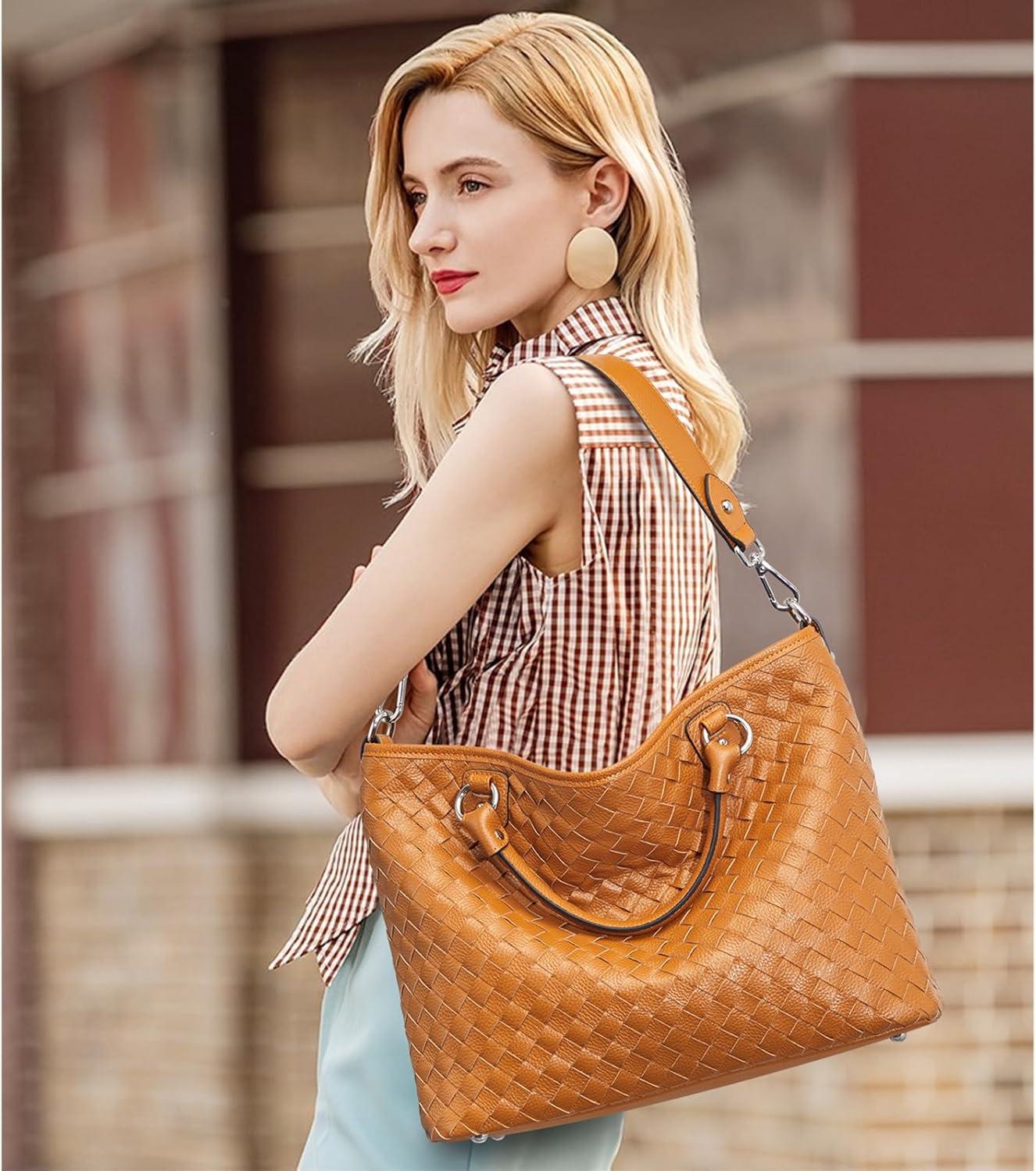 Kattee Woven Bag for Women, Leather Tote Bag Large Handbag and Purse Retro Handmade Shoulder Bag(Brown)